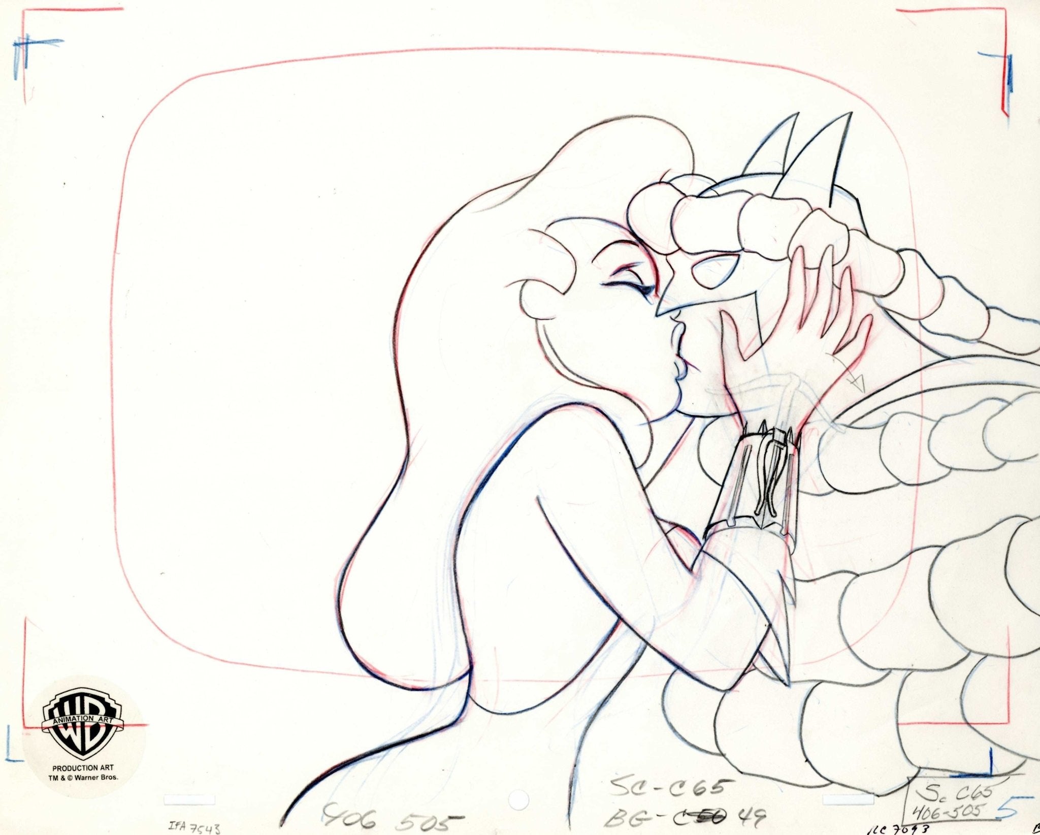 Batman The Animated Series Original Production Drawing: Batman and Poison Ivy