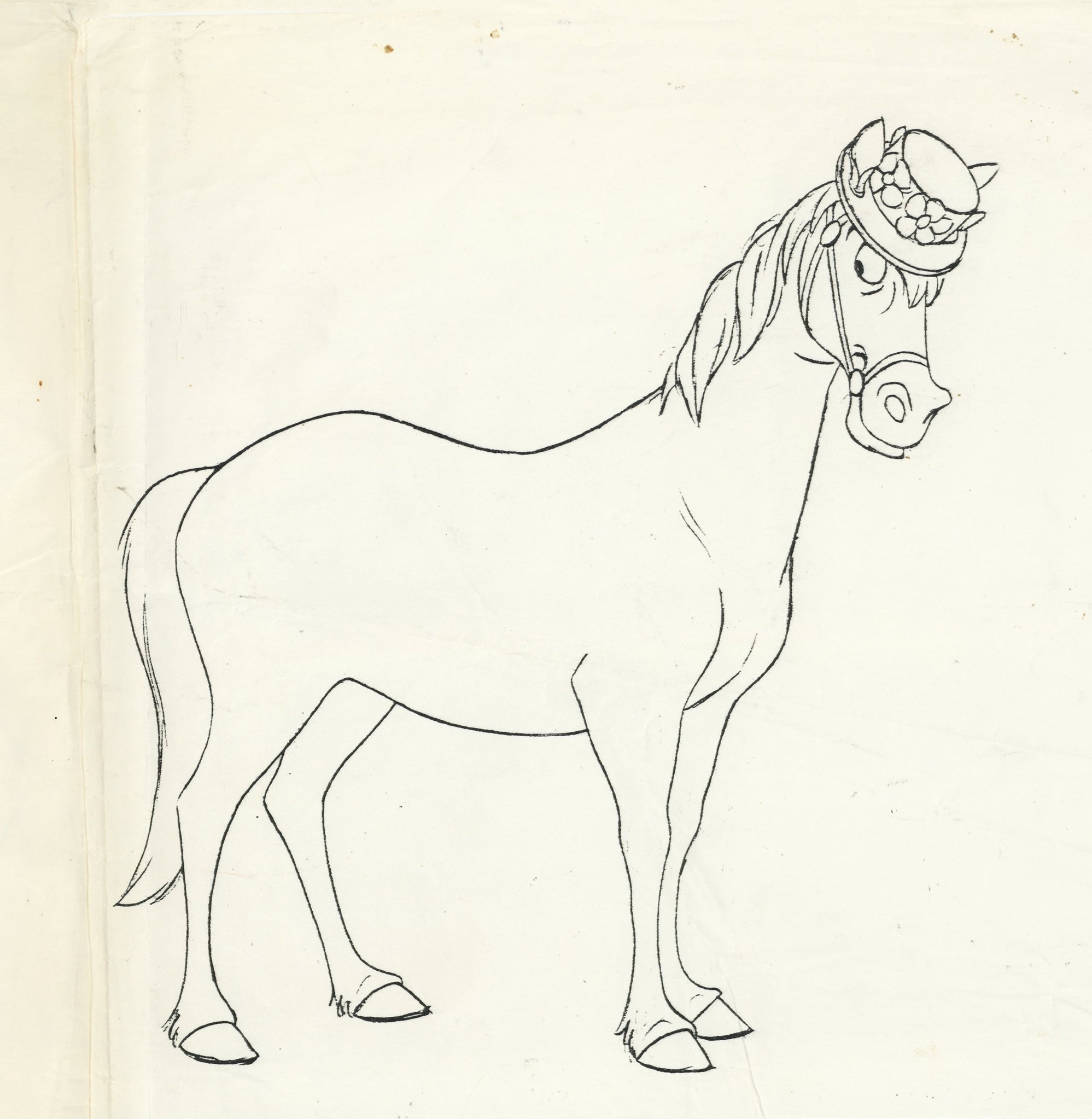 ABOUT THE MEDIUM: Photostat Model Sheets are reference guides used by animators to ensure consistency in character design, proportions, and expressions throughout a film. These printed sheets typically feature multiple poses, facial expressions, and turnarounds of a character, often photocopied from finalized drawings by lead animators. Model sheets help maintain uniformity in animation by providing a standard reference for all artists working on a character, preventing visual discrepancies between different scenes.