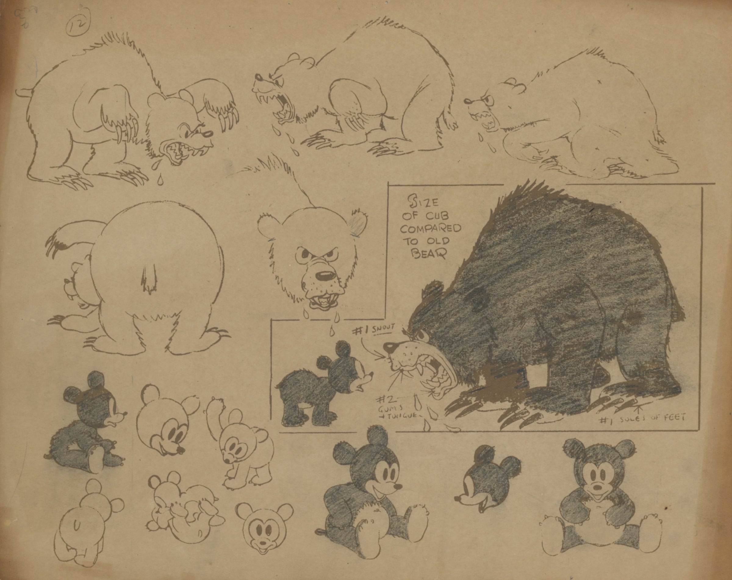ABOUT THE MEDIUM: Photostat Model Sheets are reference guides used by animators to ensure consistency in character design, proportions, and expressions throughout a film. These printed sheets typically feature multiple poses, facial expressions, and turnarounds of a character, often photocopied from finalized drawings by lead animators. Model sheets help maintain uniformity in animation by providing a standard reference for all artists working on a character, preventing visual discrepancies between different scenes.