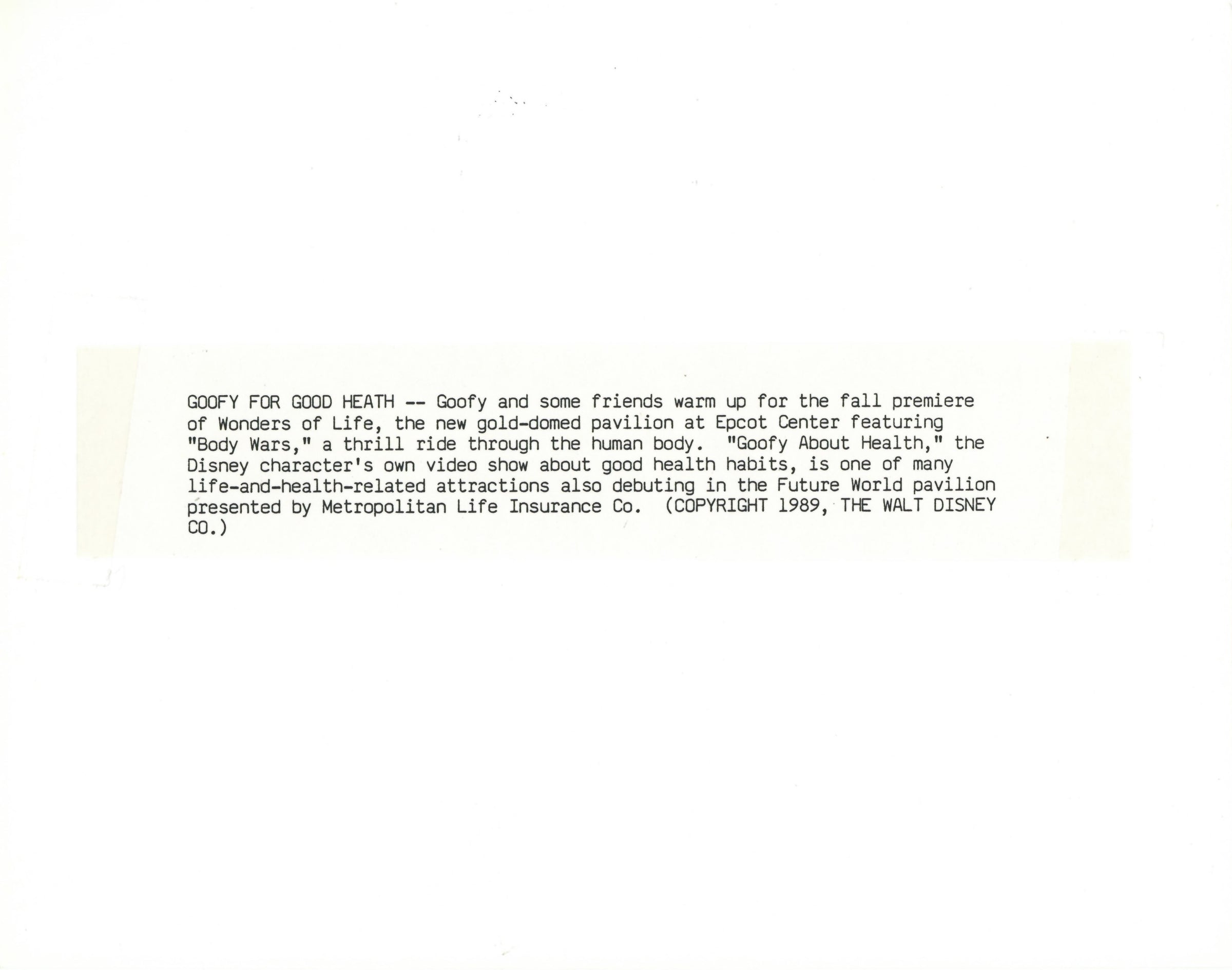 Disney Publicity Photo (1989): Goofy About Health