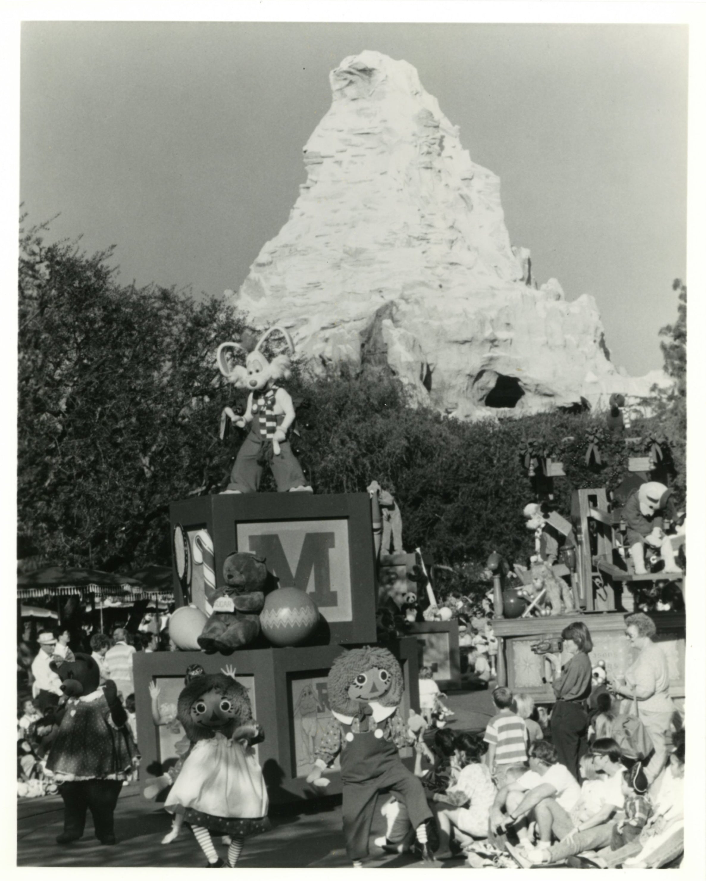 ABOUT THE IMAGE: "P-P-P-P-PRESIDING OVER TOYLAND--Roger Rabbit does his butterfingered best to keep order among the dancing toys in the Toyland finale of the "Very Merry Christmas Parade." The parade, a Disneyland holiday tradition, will be presented twice daily at the Anaheim theme park from Thanksgiving (Nov. 28) through Jan. 5. Other holiday entertainment highlights this year include "Mickey's Nutcracker," an all-new live stage show in which Disneyland characters present a tongue-in-cheek version of the Tchaikovsky ballet, and the first Disneyland appearances of the stars of a new Disney animated feature, "Beauty and the Beast."