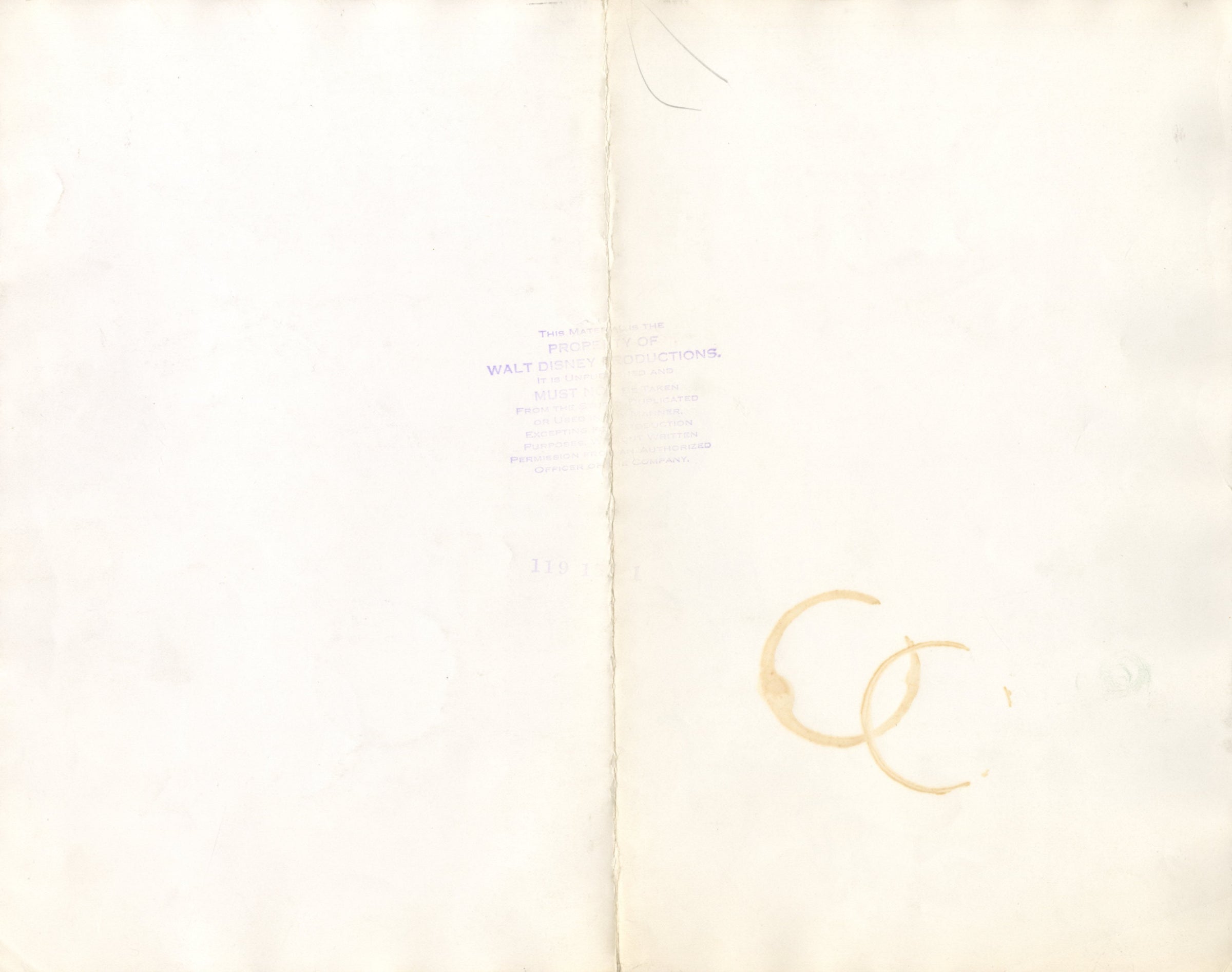 SPECIAL NOTES: A stamp reading "PROPERTY OF WALT DISNEY PRODUCTIONS" is visible on the back of this model sheet along with two coffee ring stains
