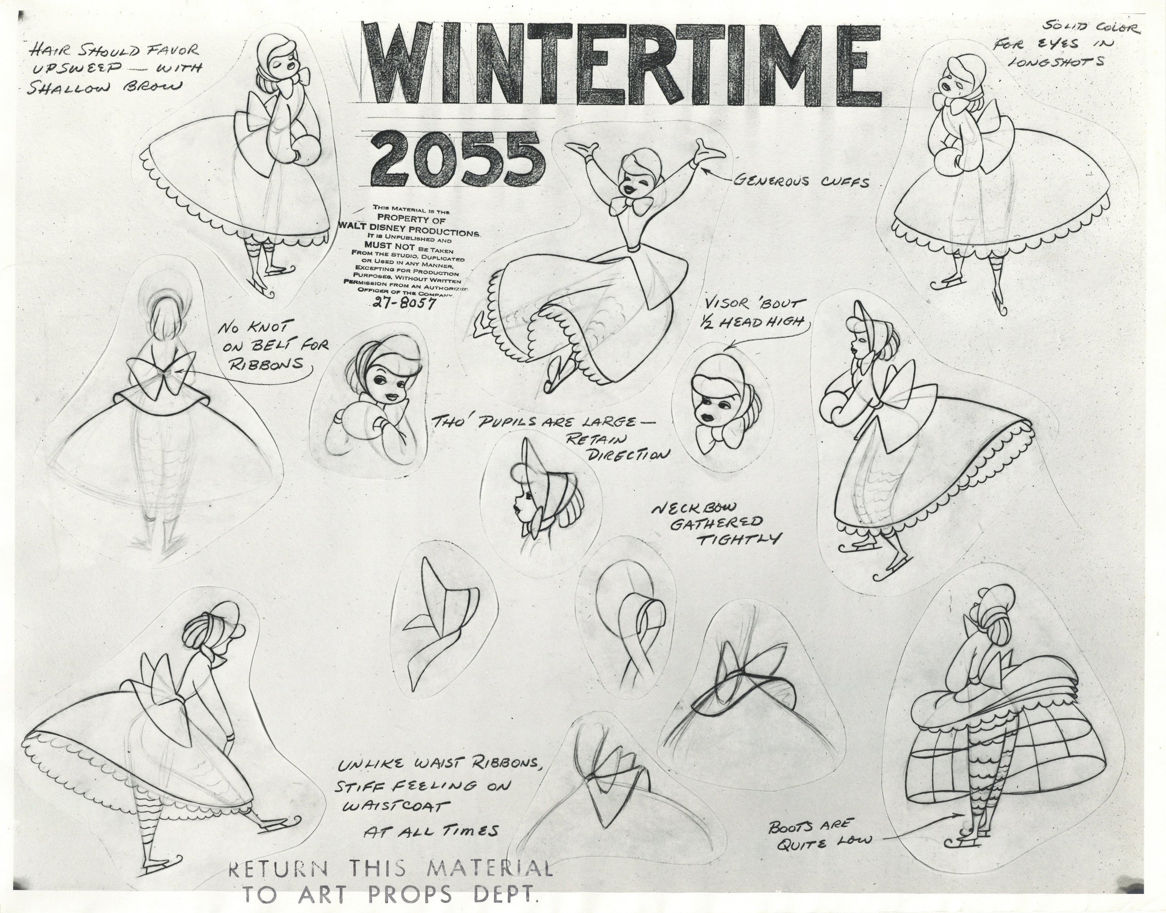ABOUT THE MEDIUM: Photostat Model Sheets are reference guides used by animators to ensure consistency in character design, proportions, and expressions throughout a film. These printed sheets typically feature multiple poses, facial expressions, and turnarounds of a character, often photocopied from finalized drawings by lead animators. Model sheets help maintain uniformity in animation by providing a standard reference for all artists working on a character, preventing visual discrepancies between different scenes.