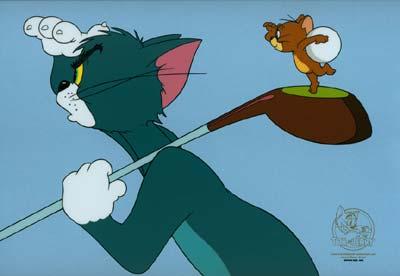 through his gnarling choppers. Regardless though of this tough turf, Jerry’s endgame wins with a hole-in-one drive straight onto Tom’s head. Golf: the wise clubber who said it’s a game people love to hate was right. It’s also a game most cats must love to also hate, particularly Tom.
