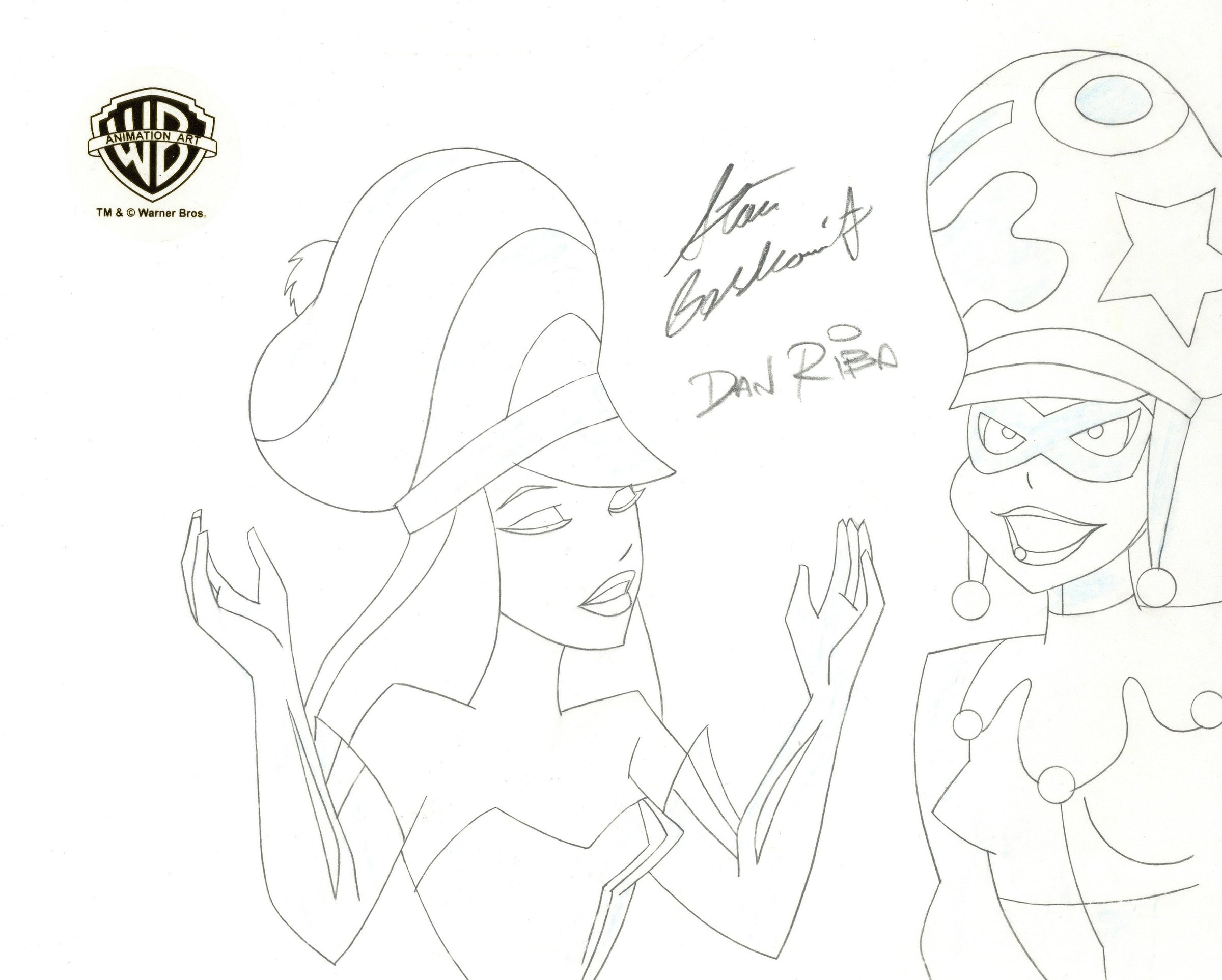 The New Batman Adventures Original Production Drawing Signed by Dan Riba and Stan Berkowitz: Harley, Ivy