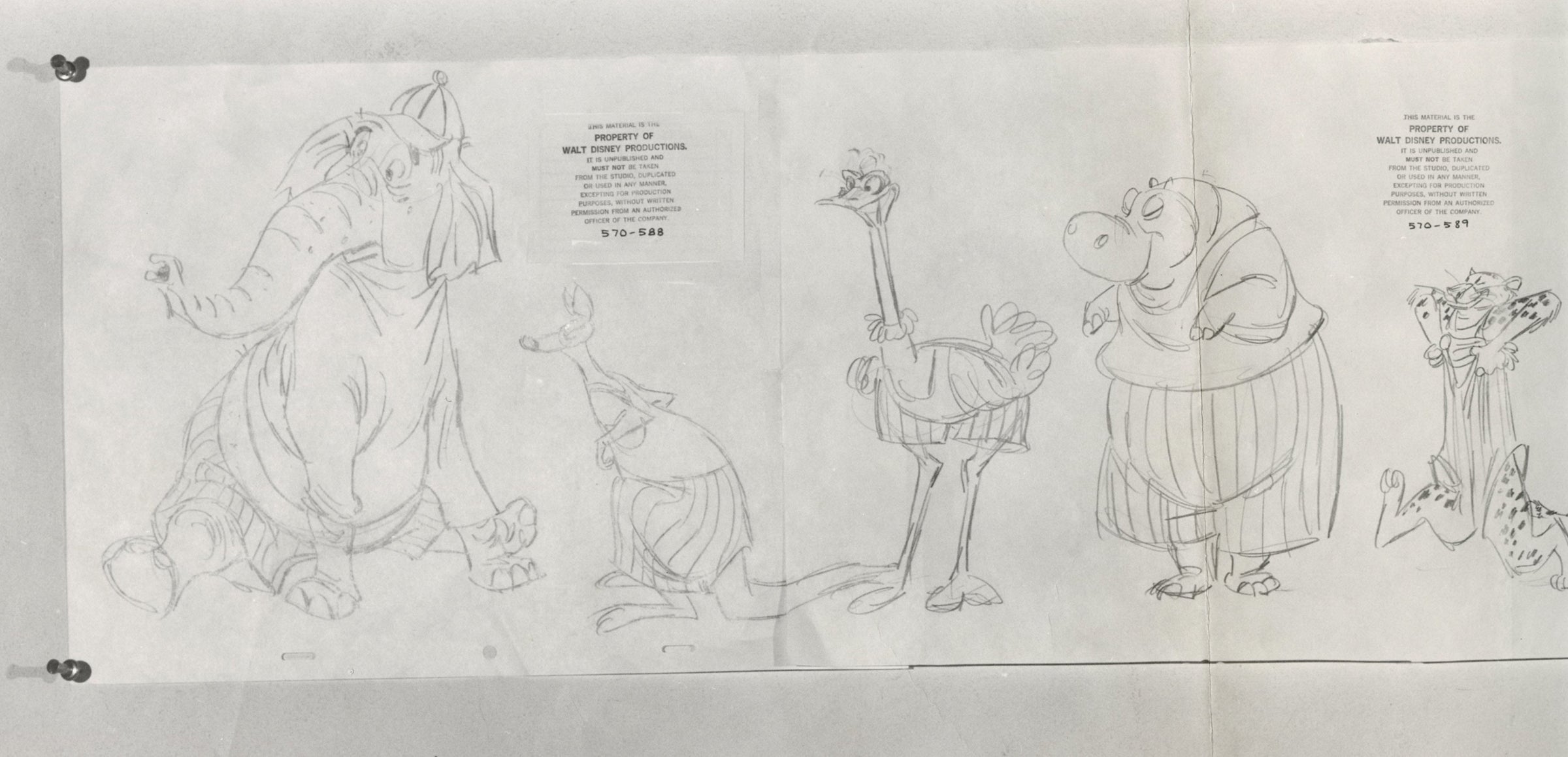 ABOUT THE MEDIUM: Photostat Model Sheets are reference guides used by animators to ensure consistency in character design, proportions, and expressions throughout a film. These printed sheets typically feature multiple poses, facial expressions, and turnarounds of a character, often photocopied from finalized drawings by lead animators. Model sheets help maintain uniformity in animation by providing a standard reference for all artists working on a character, preventing visual discrepancies between different scenes.