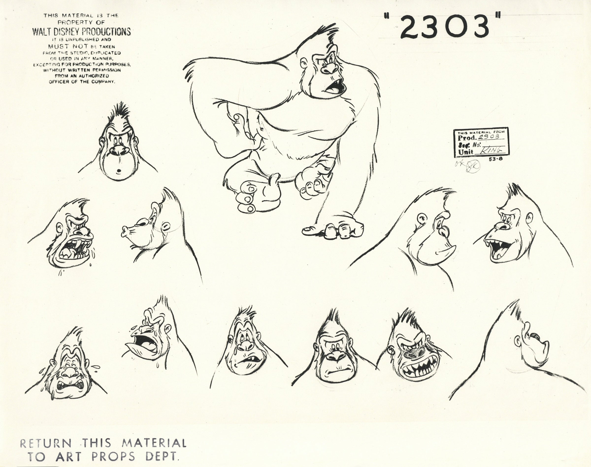 ABOUT THE MEDIUM: Photostat Model Sheets are reference guides used by animators to ensure consistency in character design, proportions, and expressions throughout a film. These printed sheets typically feature multiple poses, facial expressions, and turnarounds of a character, often photocopied from finalized drawings by lead animators. Model sheets help maintain uniformity in animation by providing a standard reference for all artists working on a character, preventing visual discrepancies between different scenes.