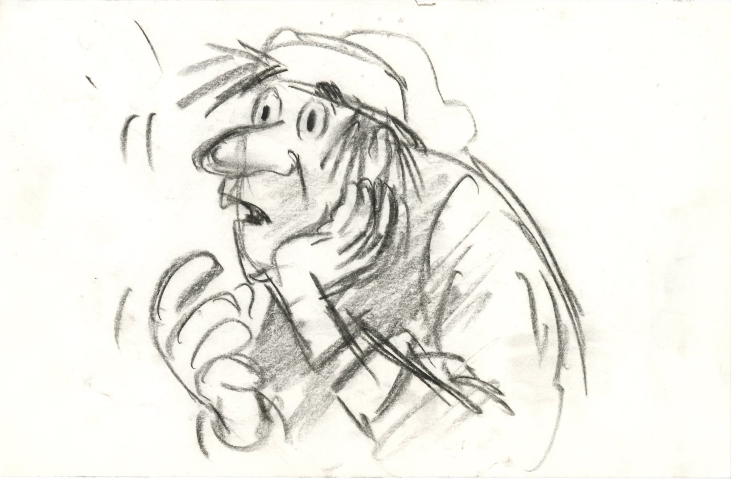 MEDIUM: Original Storyboard Drawing - Charcoal IMAGE SIZE: 8.5" x 5.5" PRODUCTION: Oliver & Company, 1988 SKU: CCV4355