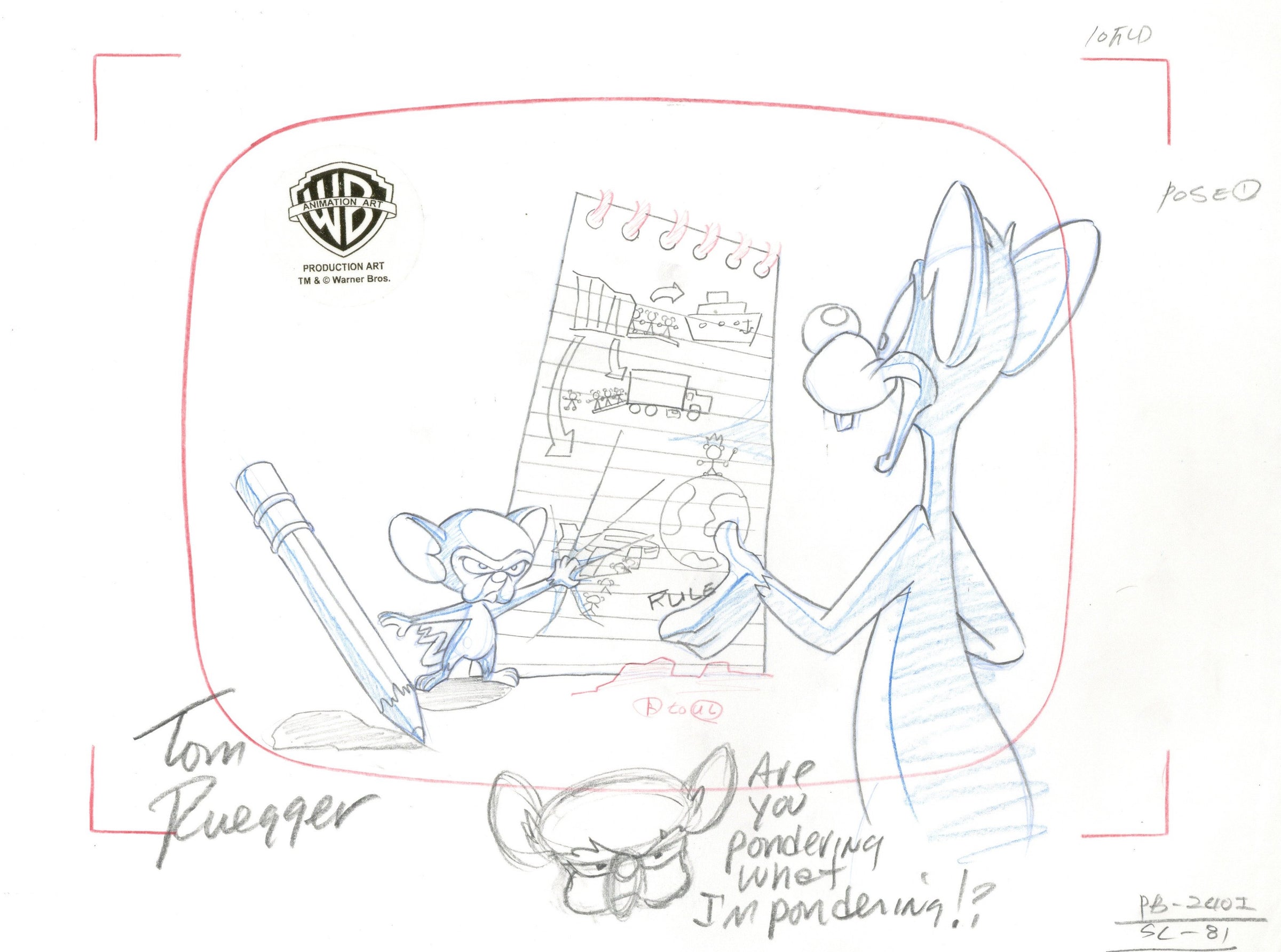 Pinky And The Brain Original Production Drawing Signed and Remarqued by Tom Ruegger: Pinky and Brain
