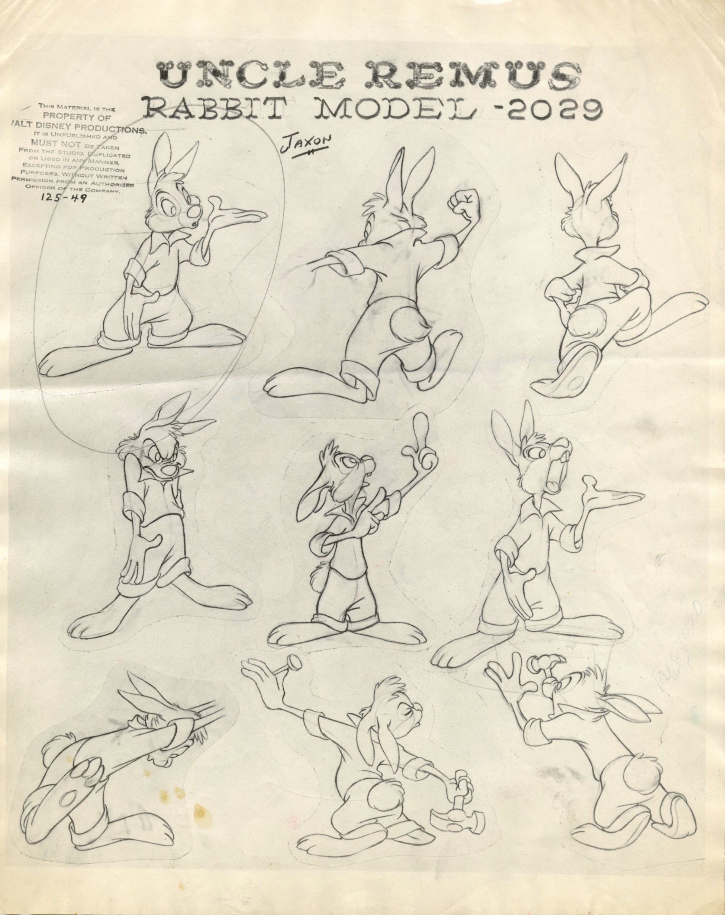 ABOUT THE MEDIUM: A model sheet is a group of character drawings illustrating different poses and expressions of a cartoon character. Because a number of artists worked on a single cartoon, these sheets were circulated to the animators to give a uniform look and feel to a character throughout a production.