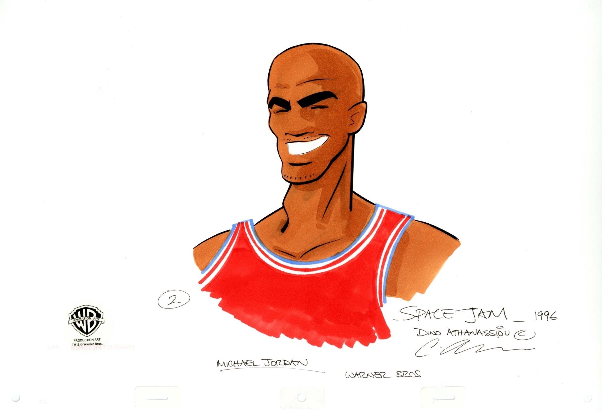 ABOUT THE IMAGE: Extremely rare animation concept drawings depicting Jordan from Warner Brothers' 1996 live-action/animated feature film, Space Jam. The concept art is from the "Dream Sequence", beautifully drawn in color marker on 16-field animation paper by Dino Athanassiou at Stardust Pictures.