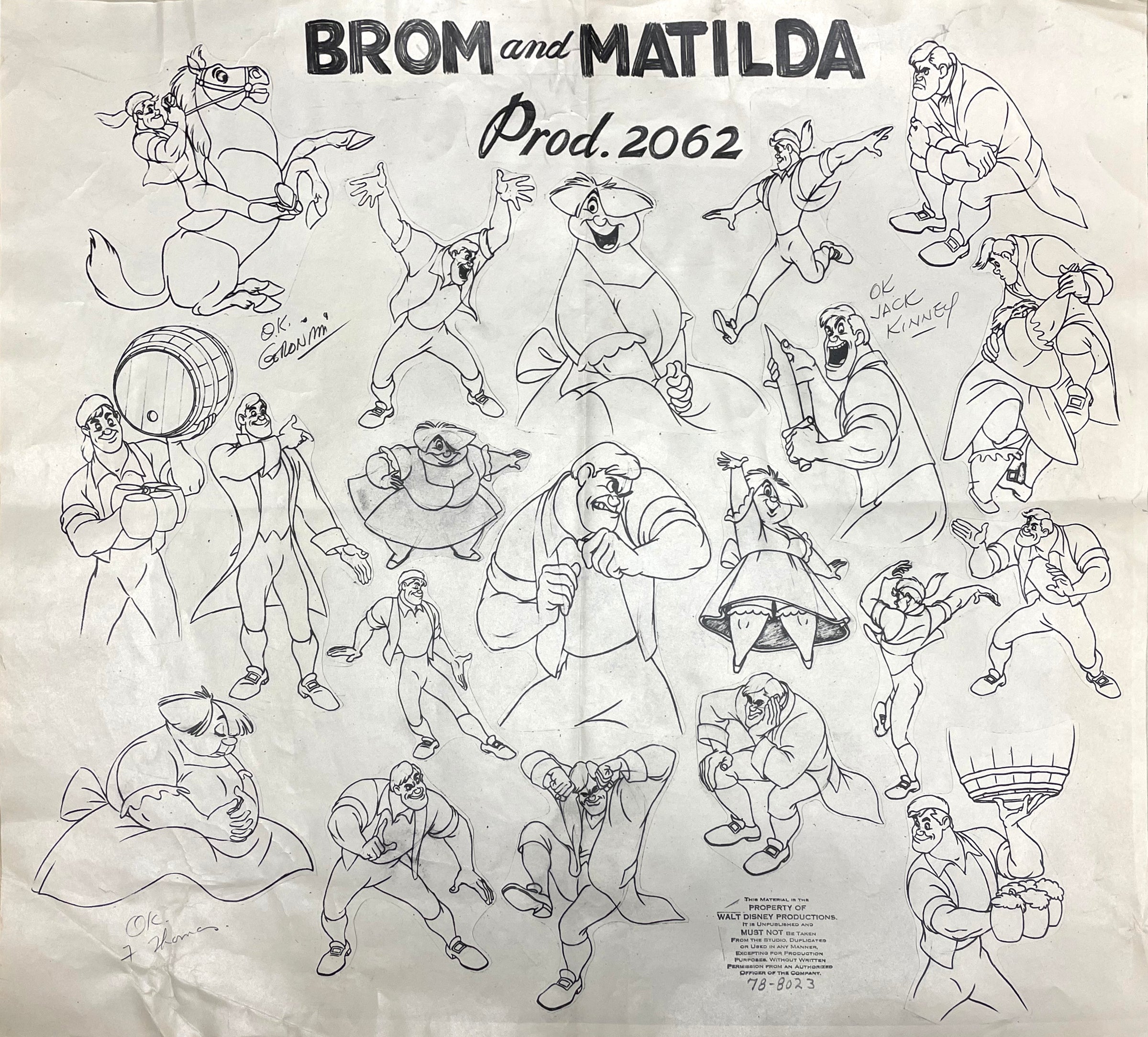 NOTES: "OK Geronimi," "OK JACK KINNEY," and "Ok F. Thomas" have been reproduced on this this model sheet. This piece shows signs of moderate production wear: creases and edge wrinkling. Due to its size, this piece will be shipped rolled in a tube.