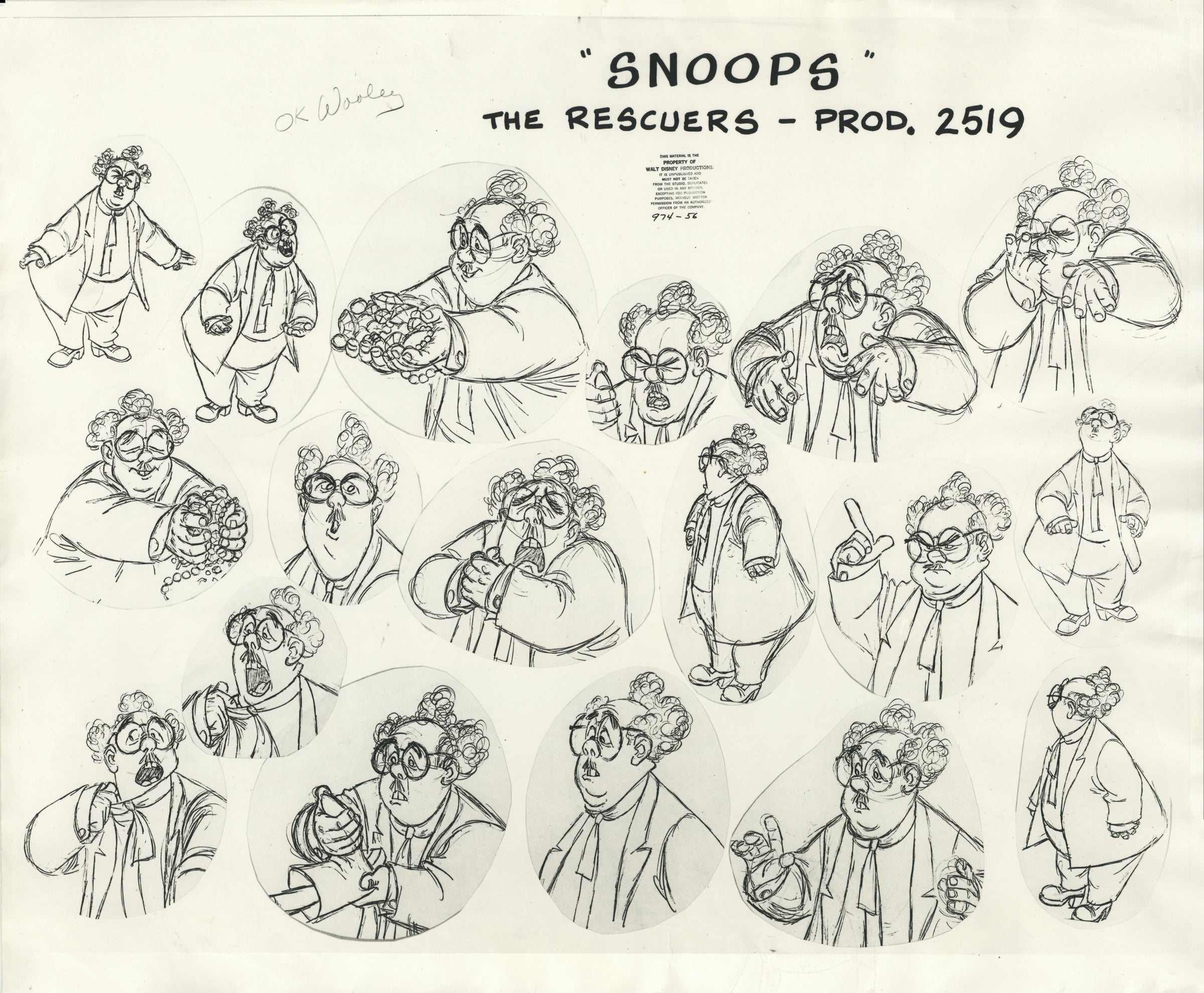 ABOUT THE IMAGE: A hand-written note from the film's director Wolfgang Reitherman, "OK Wooley," has been reproduced in the upper left corner of this model sheet.