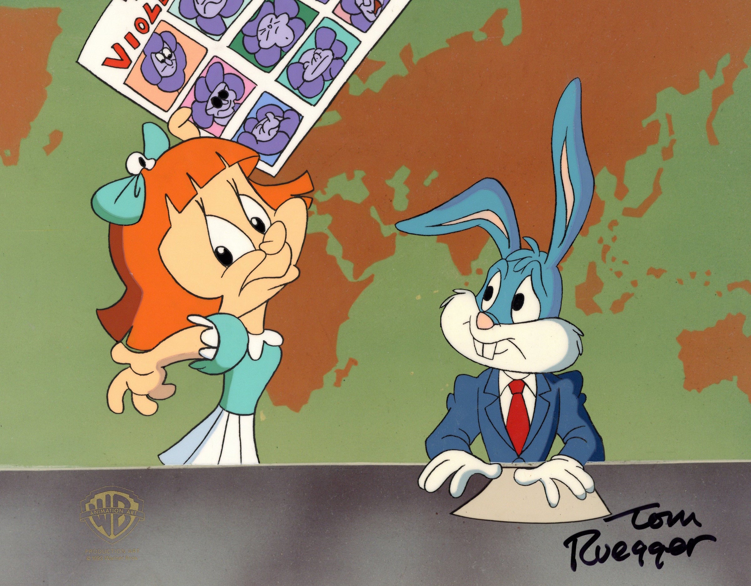 ABOUT THE IMAGE: Steven Spielberg Presents Tiny Toons, usually referred to as Tiny Toon Adventures, an American animated television series created by Tom Ruegger and produced by Amblin Entertainment and Warner Bros. Animation. In this series, a new generation of characters study at Acme Acres Looniversity under the instruction of the classic Looney Tunes characters. The leading characters are Buster and Babs Bunny (no relation) who, with their classmates, have a variety of adventures that are a mix of original stories, film and TV parodies and modern remakes of classic WB shorts. This piece comes with a certificate of authenticity.
