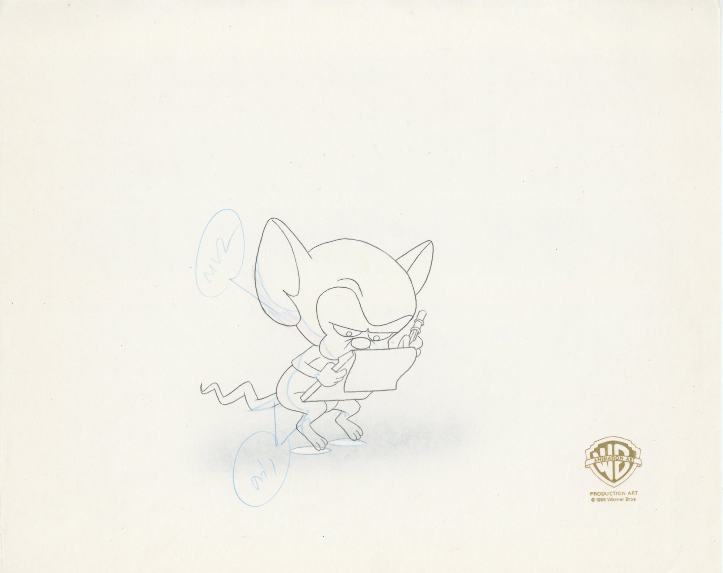 ABOUT THE IMAGE: Pinky and the Brain is a cartoon that follows a self-proclaimed genius, The Brain, and his dimwitted sidekick, Pinky, as they try to conquer the world. Pinky and the Brain was the first animated television series to be presented in Dolby Surround. It was created by Tom Ruegger and the fourth collaboration between Steven Spielberg's production company, Amblin Entertainment and Warner Bros. Animation. The characters first appeared in 1993 as a recurring skit on the show Animaniacs. Thanks to its popularity it was later spun off as a series. There were 66 episodes produced. This piece comes with a certificate of authenticity.