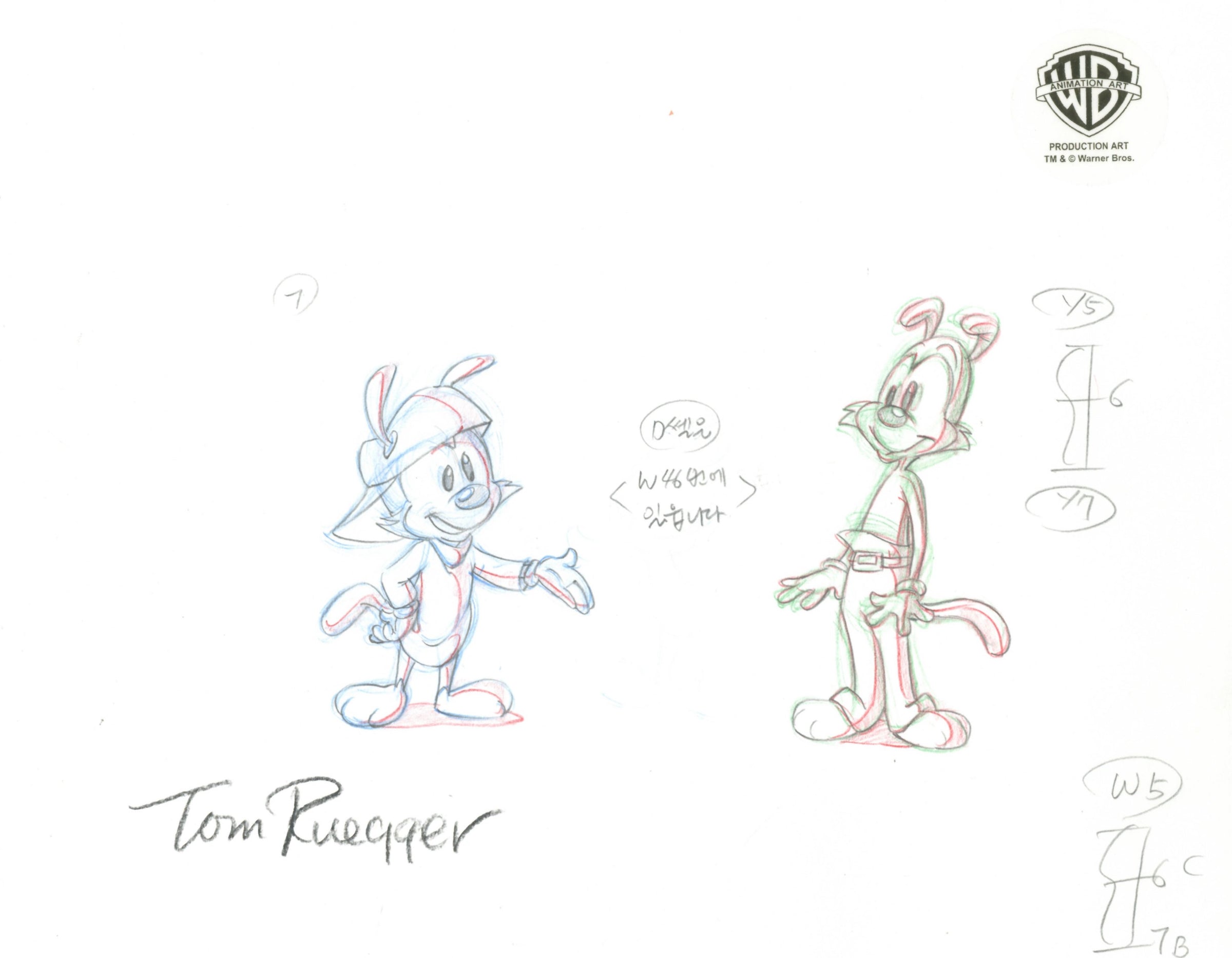 Animaniacs Original Production Drawing Signed by Tom Ruegger: Wakko and Yakko