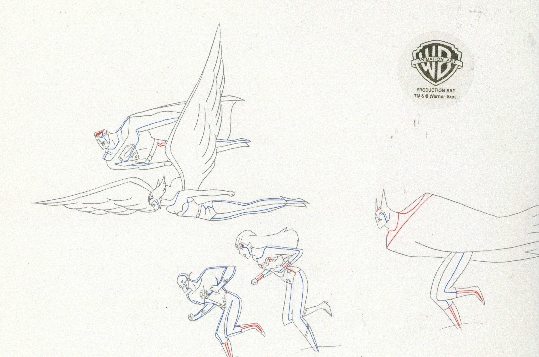 Justice League Original Production Drawing: Batman, The Flash, Wonder Woman, Hawkgirl, and Superman