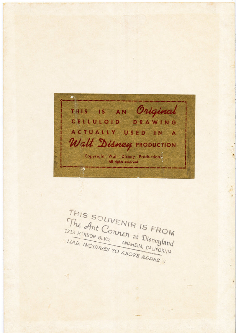 ABOUT THE MEDIUM: Original production cels are one-of-a-kind pieces of art that were used in the creation of an animated film or television show. Each has been hand-painted by studio artists on a piece of celluloid acetate, and has been photographed over a background painting to create a frame of the finished production.