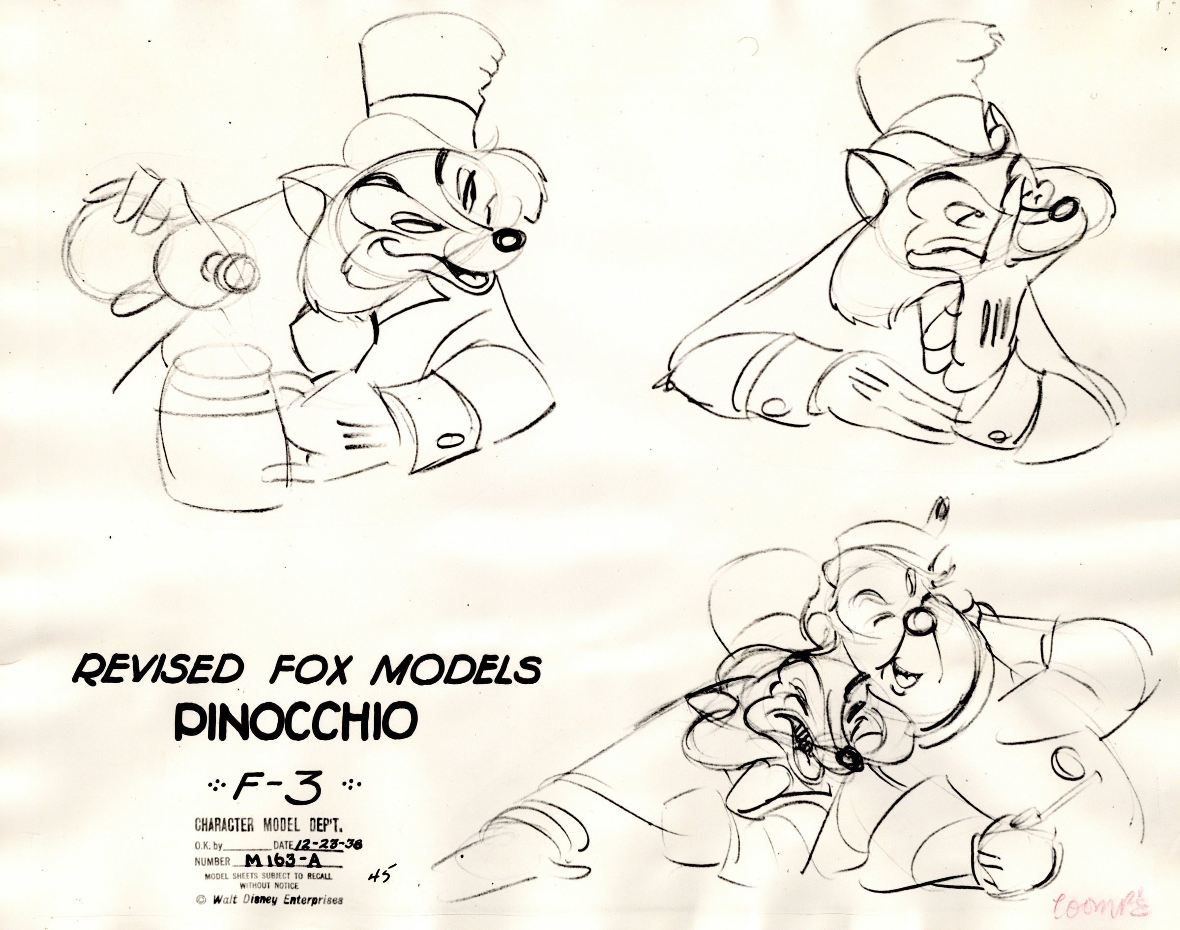 ABOUT THE MEDIUM: A model sheet is a group of character drawings illustrating different poses and expressions of a cartoon character. Because a number of artists worked on a single cartoon, these sheets were circulated to the animators to give a uniform look and feel to a character throughout a production.