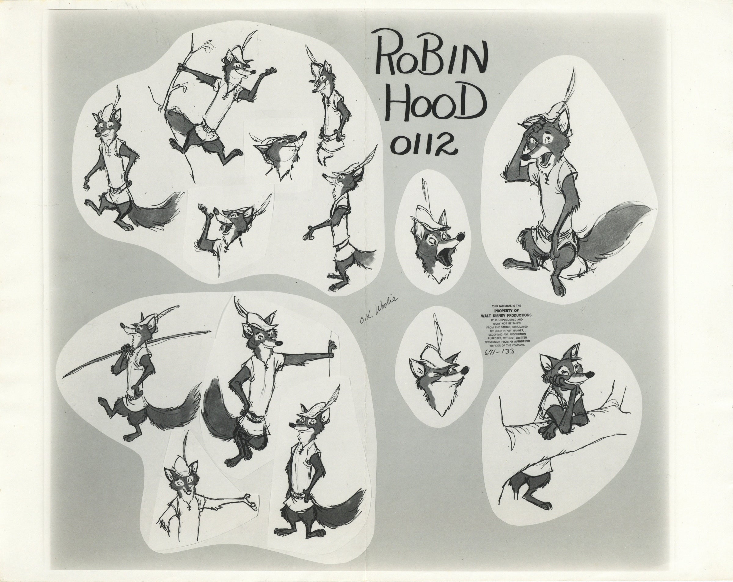 "OK Woolie" has been reproduced in the center of this model sheet. It was hand-written note from the film's director Wolfgang Reitherman. There also is a single light crease down center of piece from production use.