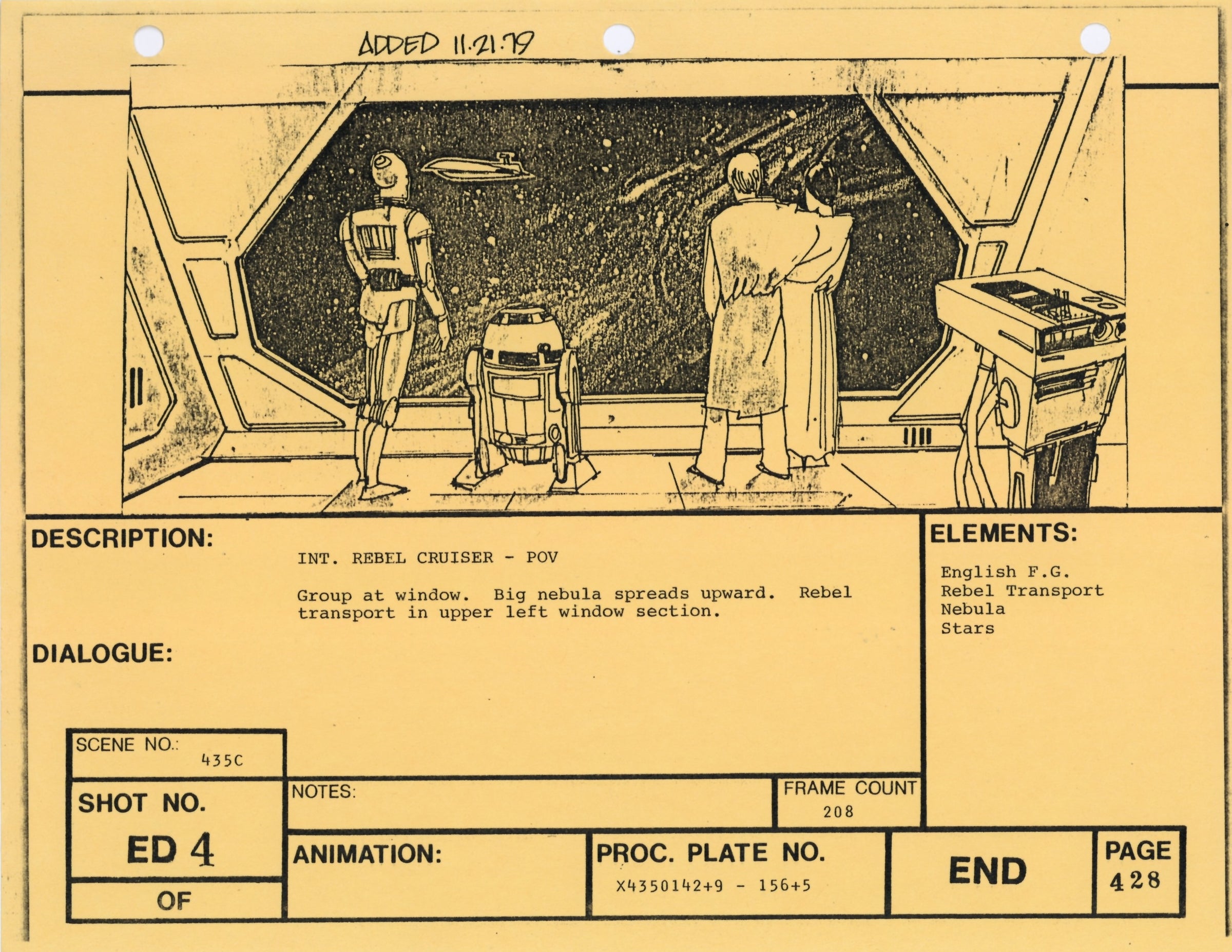 ABOUT THE ART: This storyboard print comes from the collection of award-winning miniature and optical effects artist Lorne Peterson. Peterson was invited by fellow model maker John Dykstra to work in the miniature and optical effects department of George Lucas' Star Wars: A New Hope, where he helped design and build the Star Destroyers, Imperial TIE fighters, and other classic vehicles. During pre-production, Peterson, Dykstra, and their cohort of fellow artists working under Lucas co-founded effects company Industrial Light & Magic.