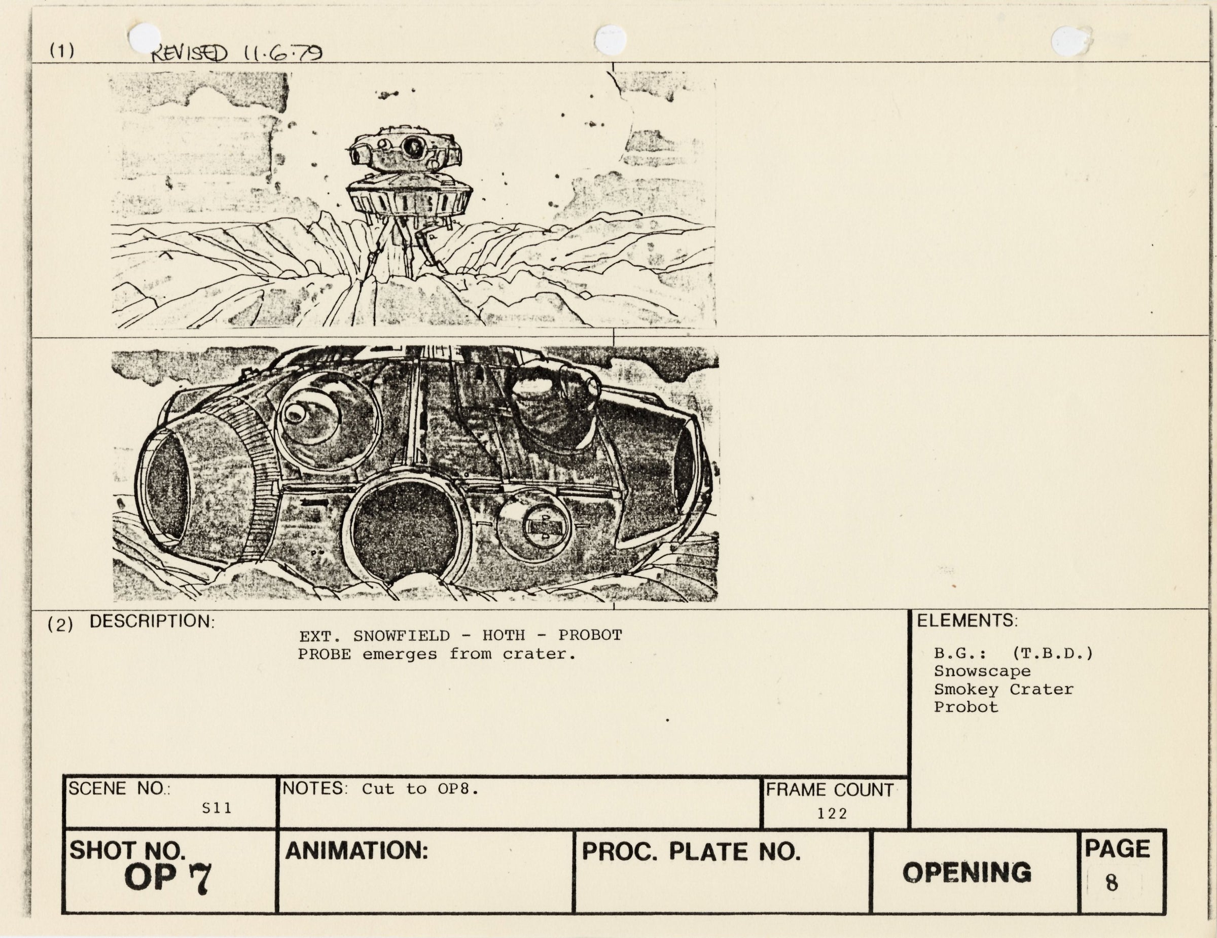 ABOUT THE ART: This storyboard print comes from the collection of award-winning miniature and optical effects artist Lorne Peterson. Peterson was invited by fellow model maker John Dykstra to work in the miniature and optical effects department of George Lucas' Star Wars: A New Hope, where he helped design and build the Star Destroyers, Imperial TIE fighters, and other classic vehicles. During pre-production, Peterson, Dykstra, and their cohort of fellow artists working under Lucas co-founded effects company Industrial Light & Magic.
