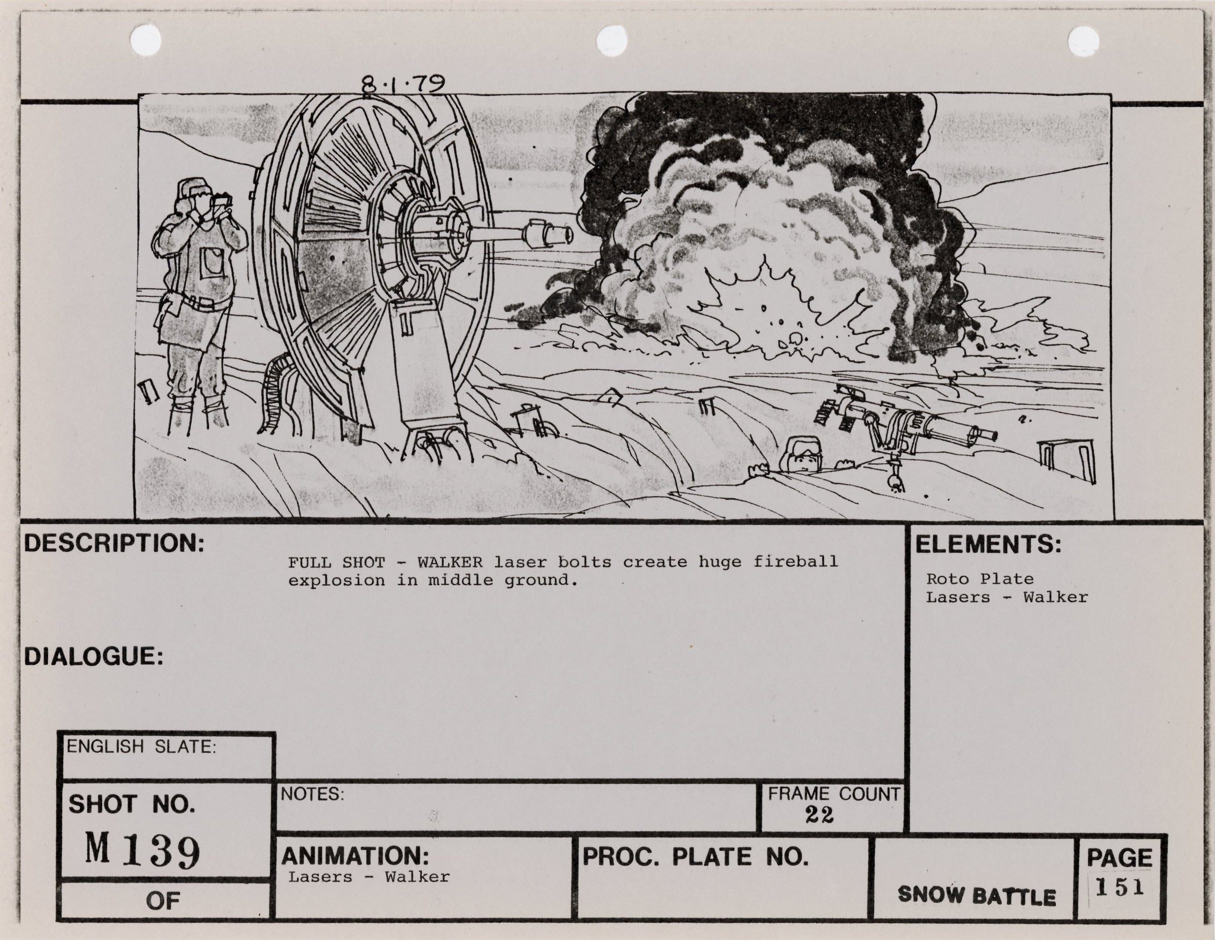 ABOUT THE ART: This storyboard print comes from the collection of award-winning miniature and optical effects artist Lorne Peterson. Peterson was invited by fellow model maker John Dykstra to work in the miniature and optical effects department of George Lucas' Star Wars: A New Hope, where he helped design and build the Star Destroyers, Imperial TIE fighters, and other classic vehicles. During pre-production, Peterson, Dykstra, and their cohort of fellow artists working under Lucas co-founded effects company Industrial Light & Magic.