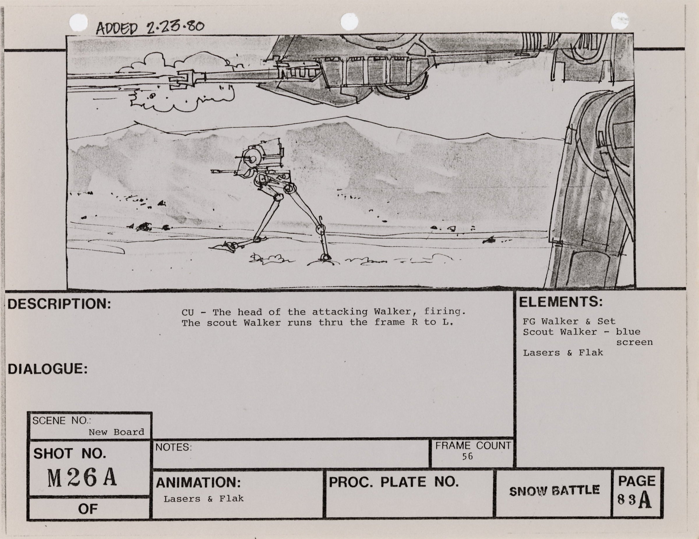 ABOUT THE ART: This storyboard print comes from the collection of award-winning miniature and optical effects artist Lorne Peterson. Peterson was invited by fellow model maker John Dykstra to work in the miniature and optical effects department of George Lucas' Star Wars: A New Hope, where he helped design and build the Star Destroyers, Imperial TIE fighters, and other classic vehicles. During pre-production, Peterson, Dykstra, and their cohort of fellow artists working under Lucas co-founded effects company Industrial Light & Magic.