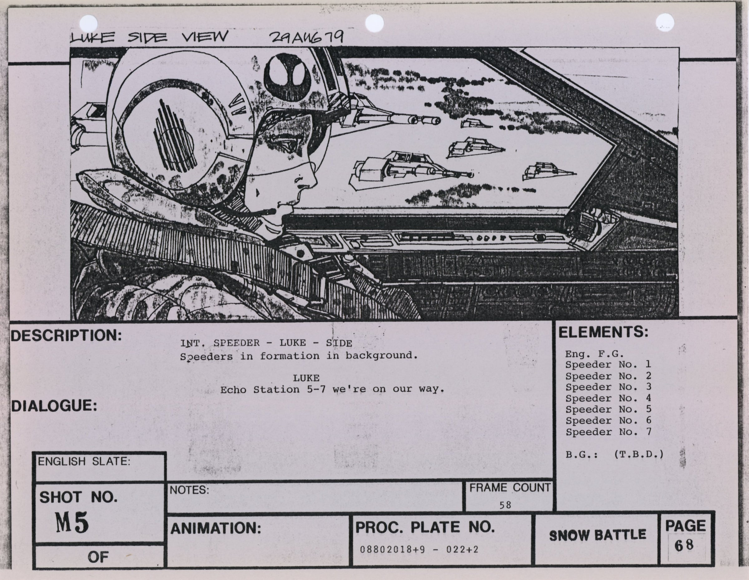 ABOUT THE ART: This storyboard print comes from the collection of award-winning miniature and optical effects artist Lorne Peterson. Peterson was invited by fellow model maker John Dykstra to work in the miniature and optical effects department of George Lucas' Star Wars: A New Hope, where he helped design and build the Star Destroyers, Imperial TIE fighters, and other classic vehicles. During pre-production, Peterson, Dykstra, and their cohort of fellow artists working under Lucas co-founded effects company Industrial Light & Magic.