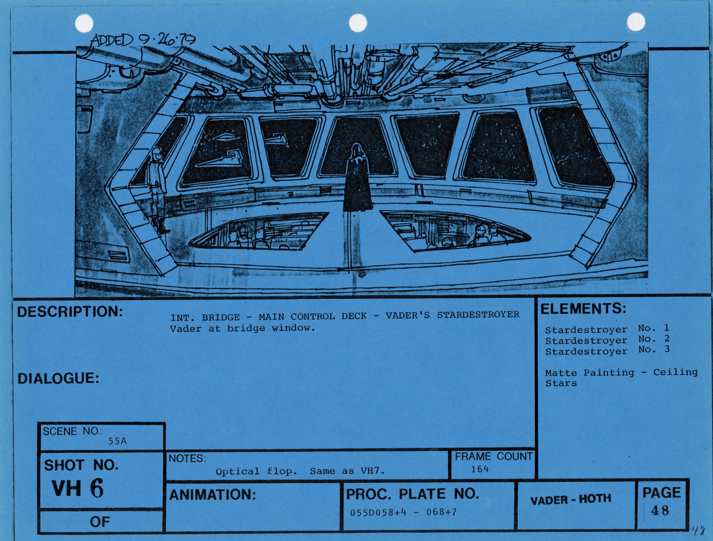ABOUT THE ART: This storyboard print comes from the collection of award-winning miniature and optical effects artist Lorne Peterson. Peterson was invited by fellow model maker John Dykstra to work in the miniature and optical effects department of George Lucas' Star Wars: A New Hope, where he helped design and build the Star Destroyers, Imperial TIE fighters, and other classic vehicles. During pre-production, Peterson, Dykstra, and their cohort of fellow artists working under Lucas co-founded effects company Industrial Light & Magic.