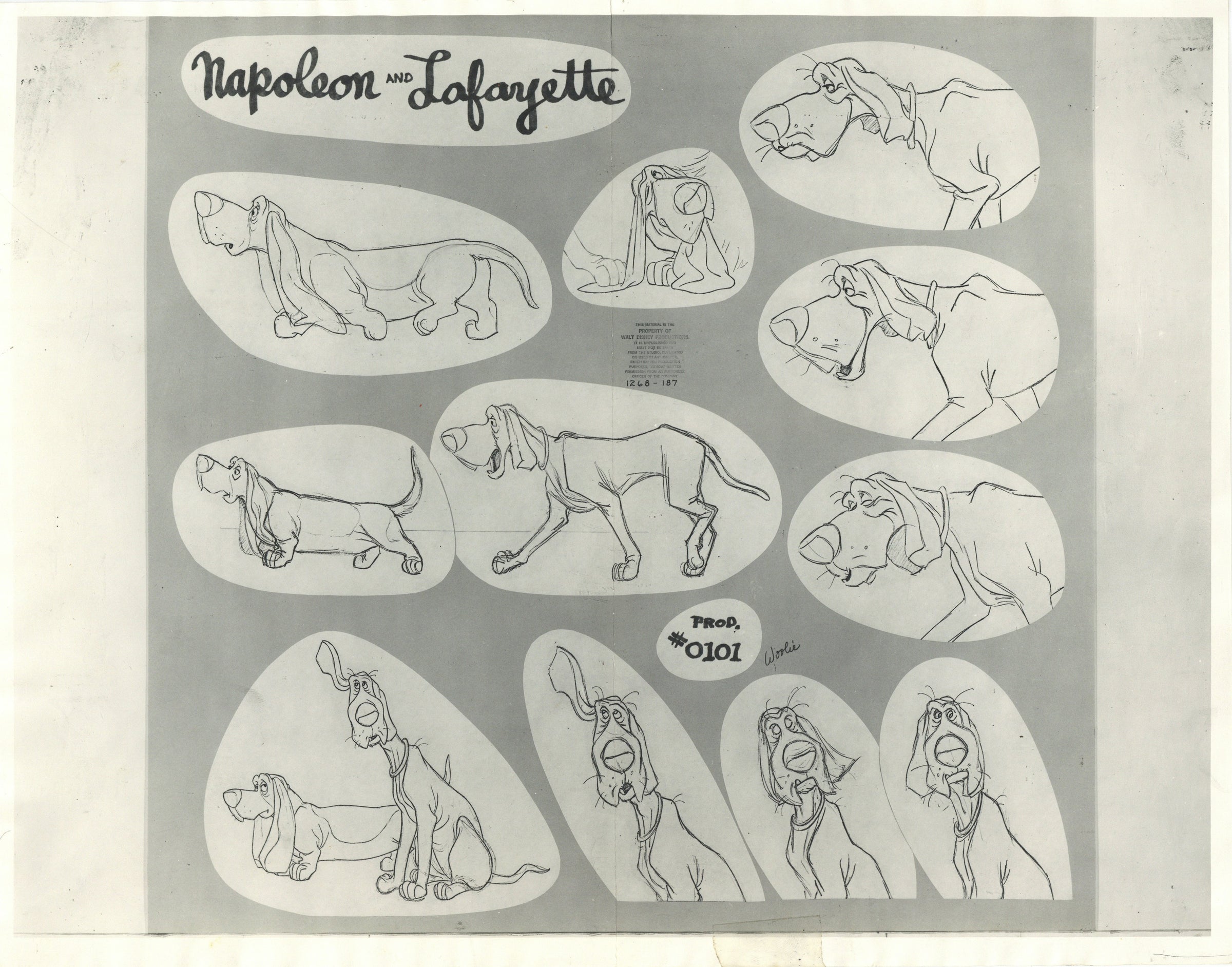 ABOUT THE IMAGE: A hand-written note from the film's director, Wolfgang Reitherman, reading "Woolie," has been reproduced at the center of this model sheet.