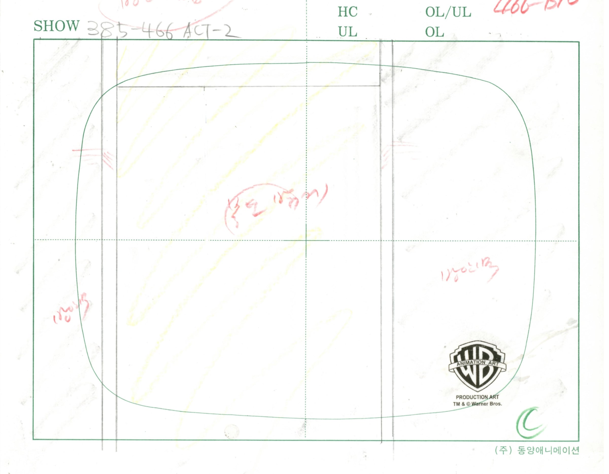 MEDIUM: Original Production Cel on Original Background with Matching Production and Layout Drawings