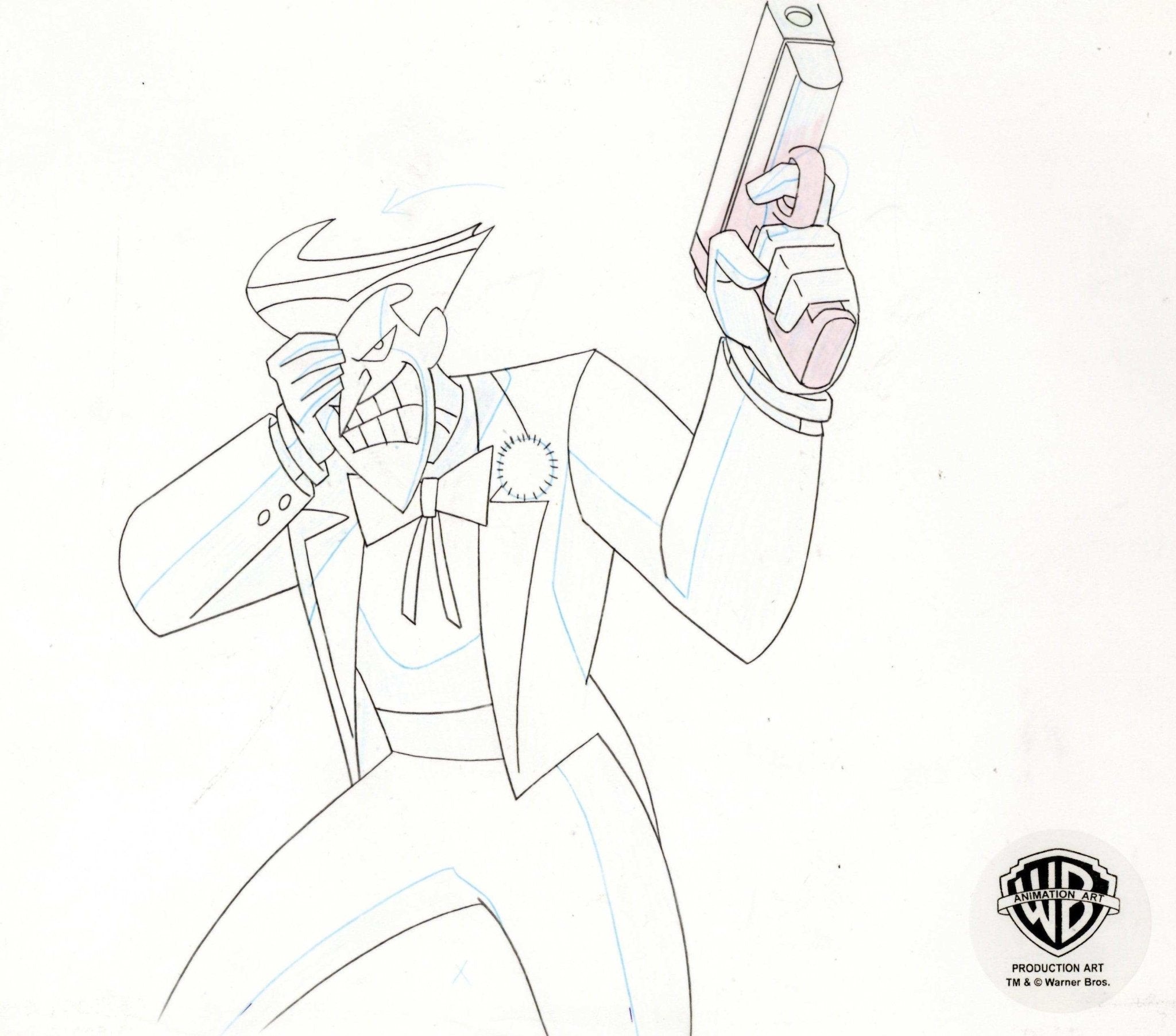 The New Batman Adventures Original Production Cel on Original Background With Matching Drawing: Joker