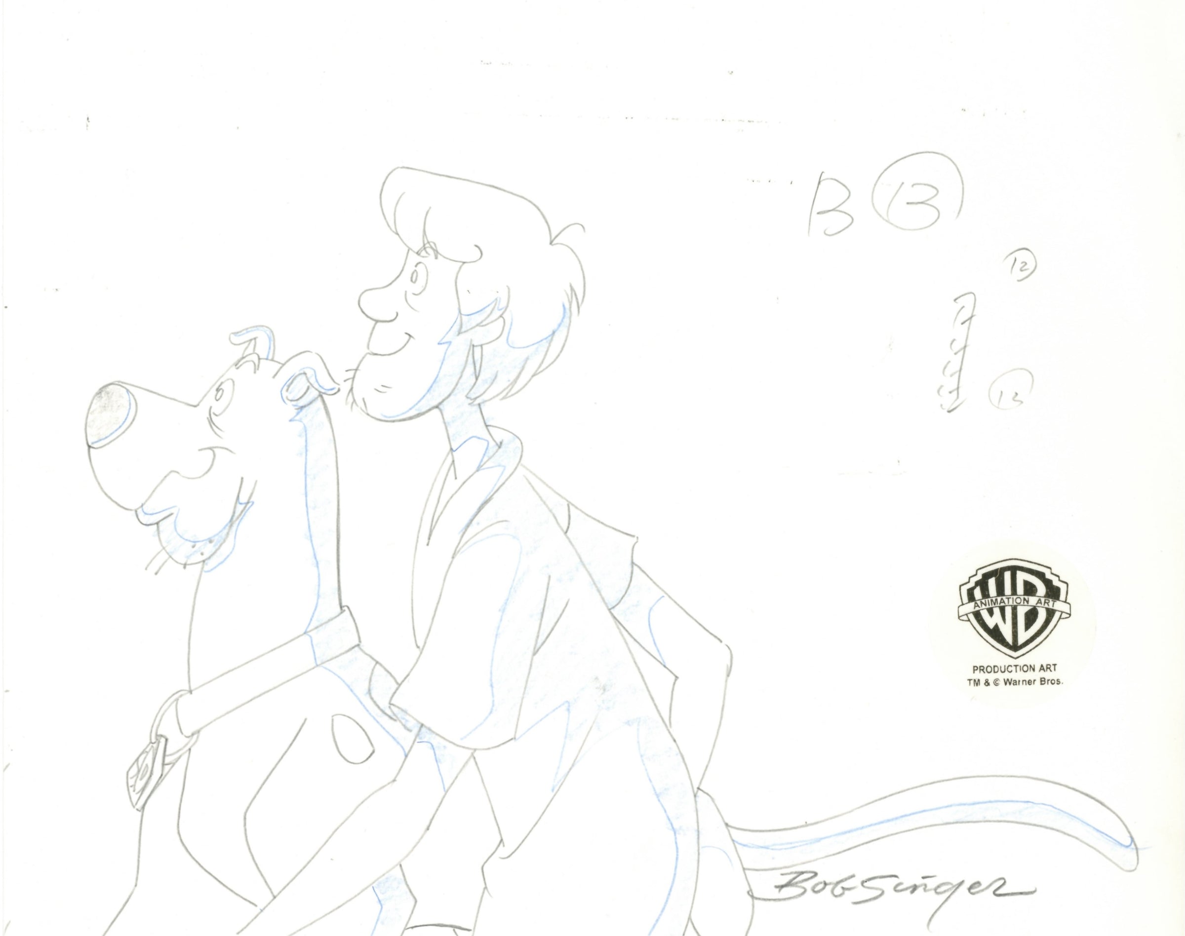 ABOUT THE IMAGE: The Hanna-Barbera cartoon, Scooby-Doo, Where Are You? was launched in 1969 and has had the longest run of a cartoon series. Over the years it’s been in 19 TV series (on CBS, ABC, the WB, Cartoon Network and Boomerang) and more than 40 animated films and two live action movies; one grossed $275 million worldwide. The show featured brainiac Velma, jock Fred, fashionista Daphne, hippie Shaggy, and the talking Great Dane Scooby-Doo, who would pile into their Mystery Machine van and hit the road searching for weird phenomena to solve. This original production drawing is hand-signed by key animator Bob Singer and comes with a certificate of authenticity.