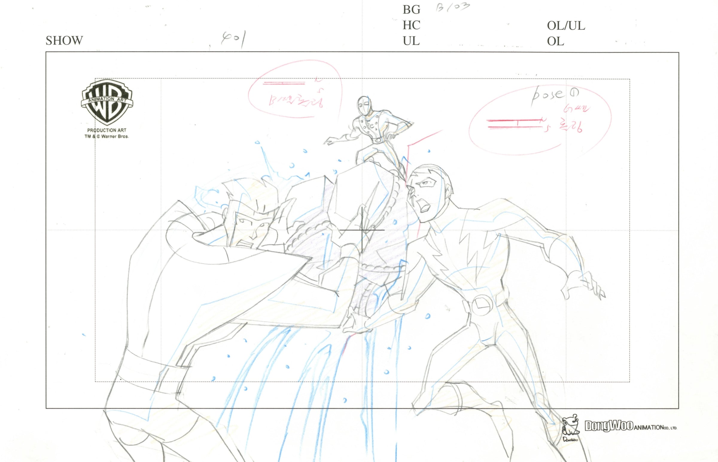 Legion of Super Heroes Original Production Drawing: Colossal Boy, Lightning Lad, Ferro Lad