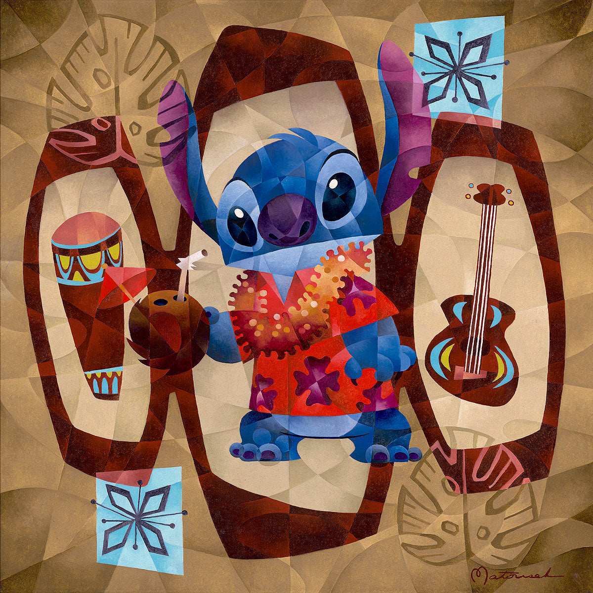 ABOUT THE IMAGE: Stitch in his Hawaiian shirt, guitar and bongo drums. Artwork inspired the Walt Disney movie film, Lilo and Stitich.