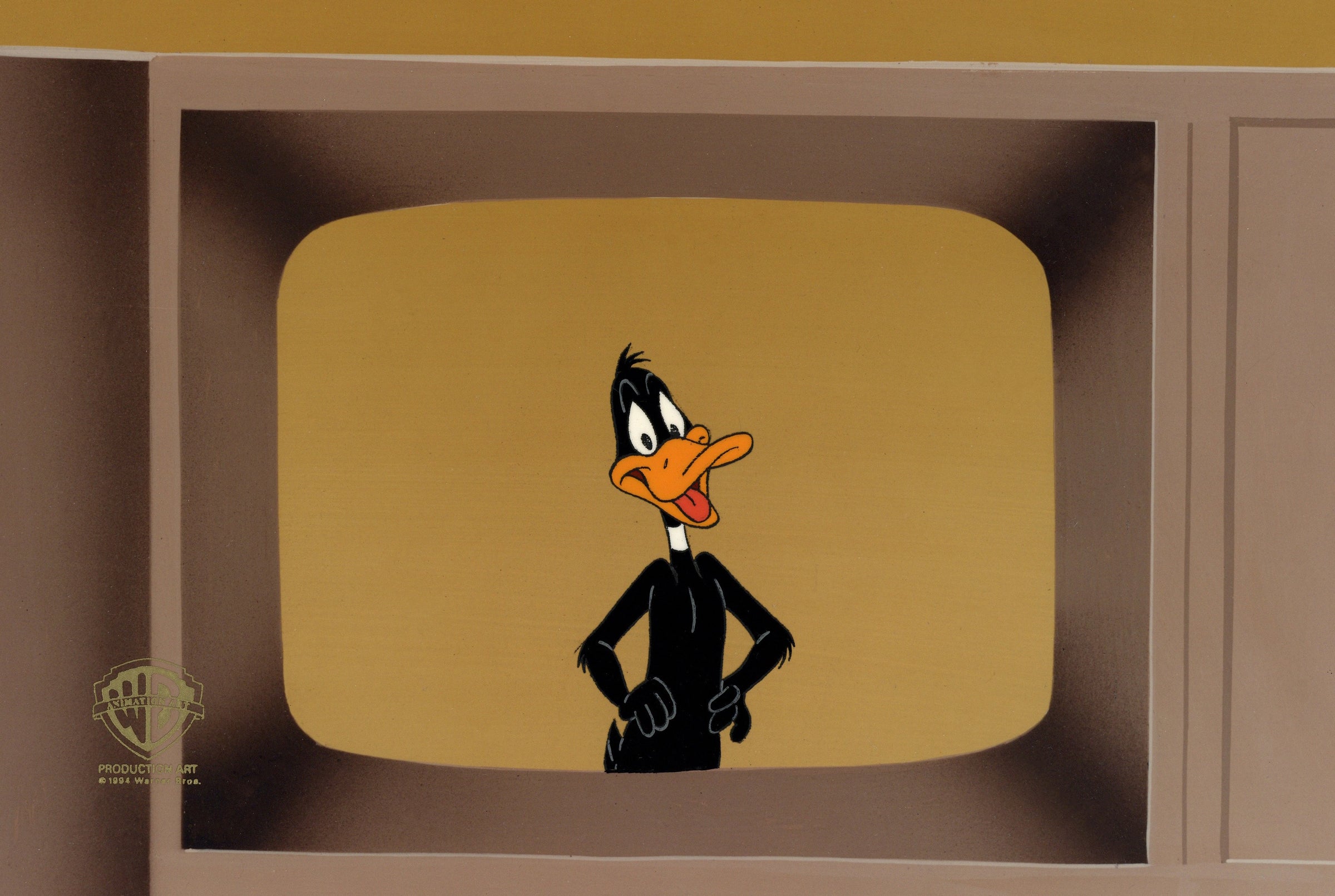 ABOUT THE IMAGE: In the animated feature "Daffy Duck's Quackbusters", wealthy J.P. Cubish has promised his fortune to anyone who can make him laugh. After Cubish dies, Daffy Duck, who won the job of personal court jester, lands the inheritance. The rub is that Cubish has demanded the person who receives his money use the funds for good. Daffy mocks the notion until Cubish's ghost starts haunting him. Determined to be rid of the spirit, Daffy recruits his friends -- Porky Pig, Bugs Bunny and others -- to start a ghost-busting service. This piece comes with a certificate of authenticity.