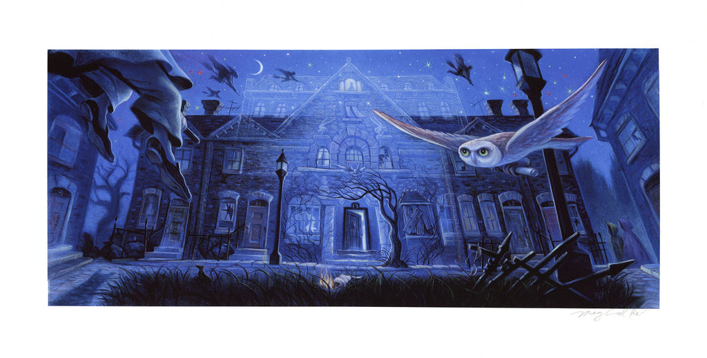 Mary GrandPré is an American illustrator and artist best known for her work on the cover art and chapter illustrations of the Harry Potter book series. Born in 1954 in South Dakota, GrandPré grew up in Minnesota and received her Bachelor of Fine Arts degree from the Minneapolis College of Art and Design. She started her career as a graphic designer before transitioning to illustration. In the late 1990s, GrandPré was commissioned to create cover art for the American editions of the Harry Potter book series by author J.K. Rowling and publisher Scholastic. She went on to create iconic illustrations for all seven books, including the distinctive lettering of the title and the images of Harry, Ron, and Hermione that are instantly recognizable to fans of the series. In addition to her work on the Harry Potter books, GrandPré has illustrated many other children's books, including "Plum Fantastic" by Liz Garton Scanlon, "The Noisy Paint Box" by Barb Rosenstock, and "In the Shade of the Nispero Tree" by Carmen T. Bernier-Grand. She has also written and illustrated her own books, such as "Clever Beatrice" and "The Bunny, the Egg, and the Big Surprise".