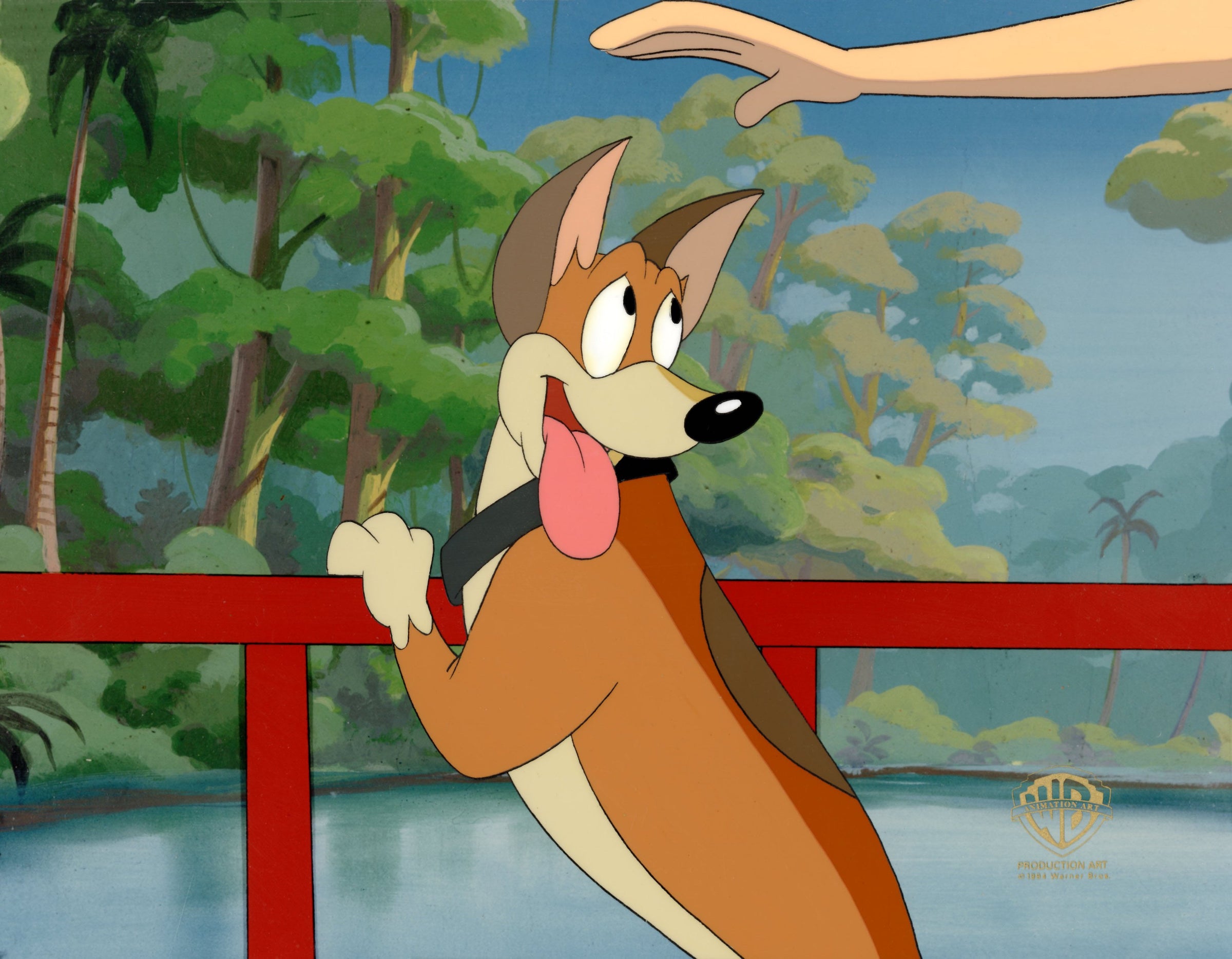 ABOUT THE MEDIUM: Original production cels are one-of-a-kind pieces of art that were used in the creation of an animated film or television show. Each has been hand-painted by studio artists on a piece of celluloid acetate, and has been photographed over a background painting to create a frame of the finished production.