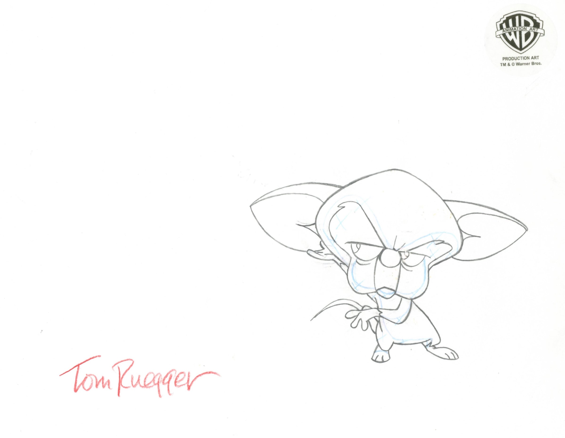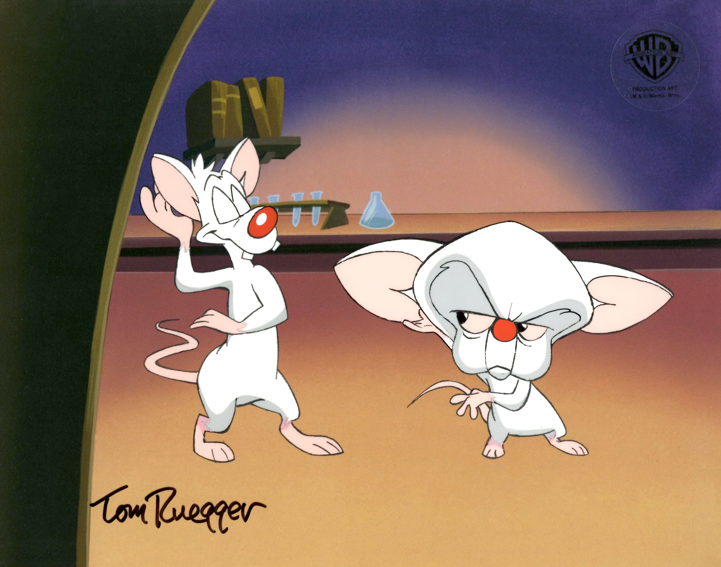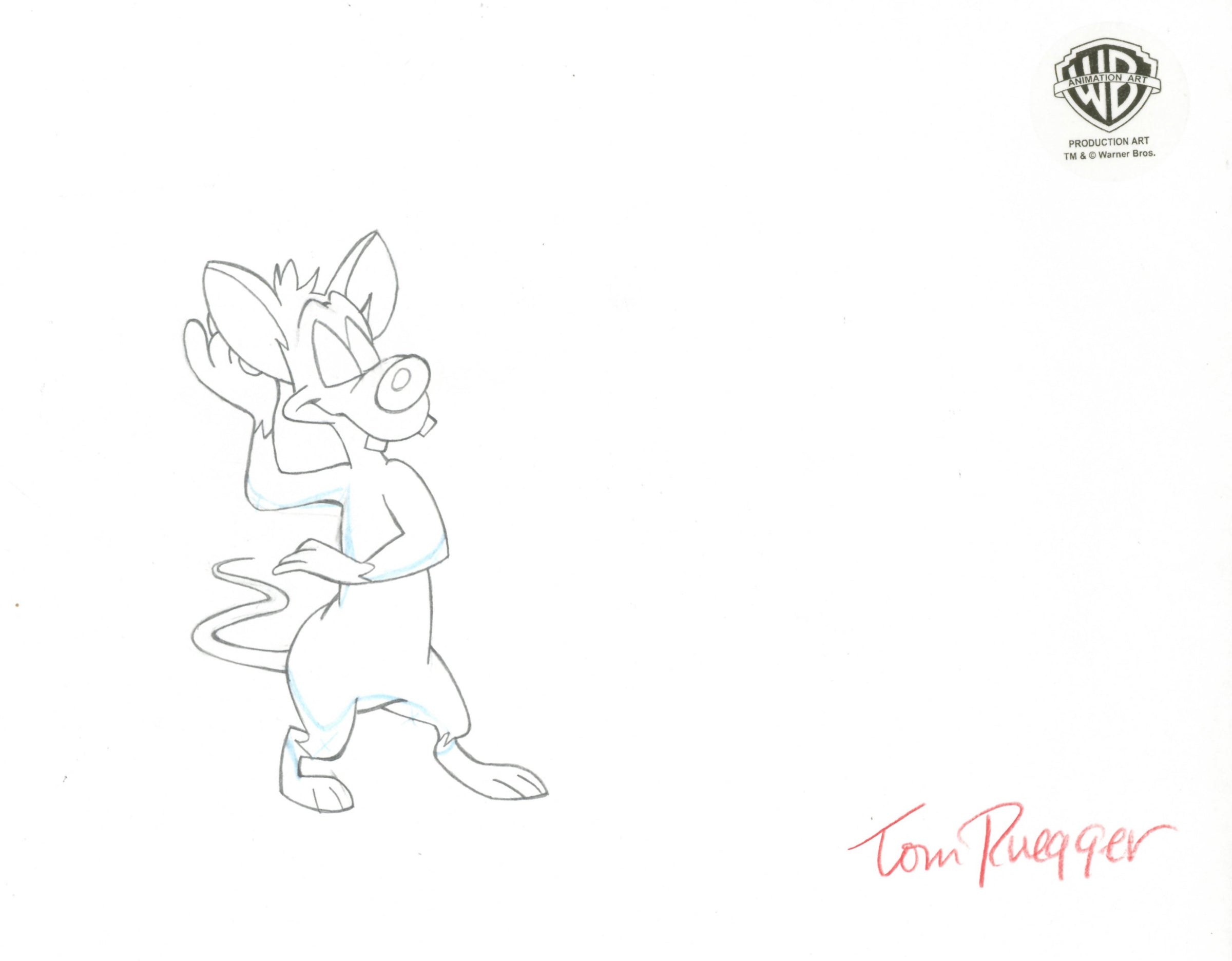 Pinky And The Brain Original Production Cel with Matching Drawings Signed by Tom Ruegger: Pinky and Brain