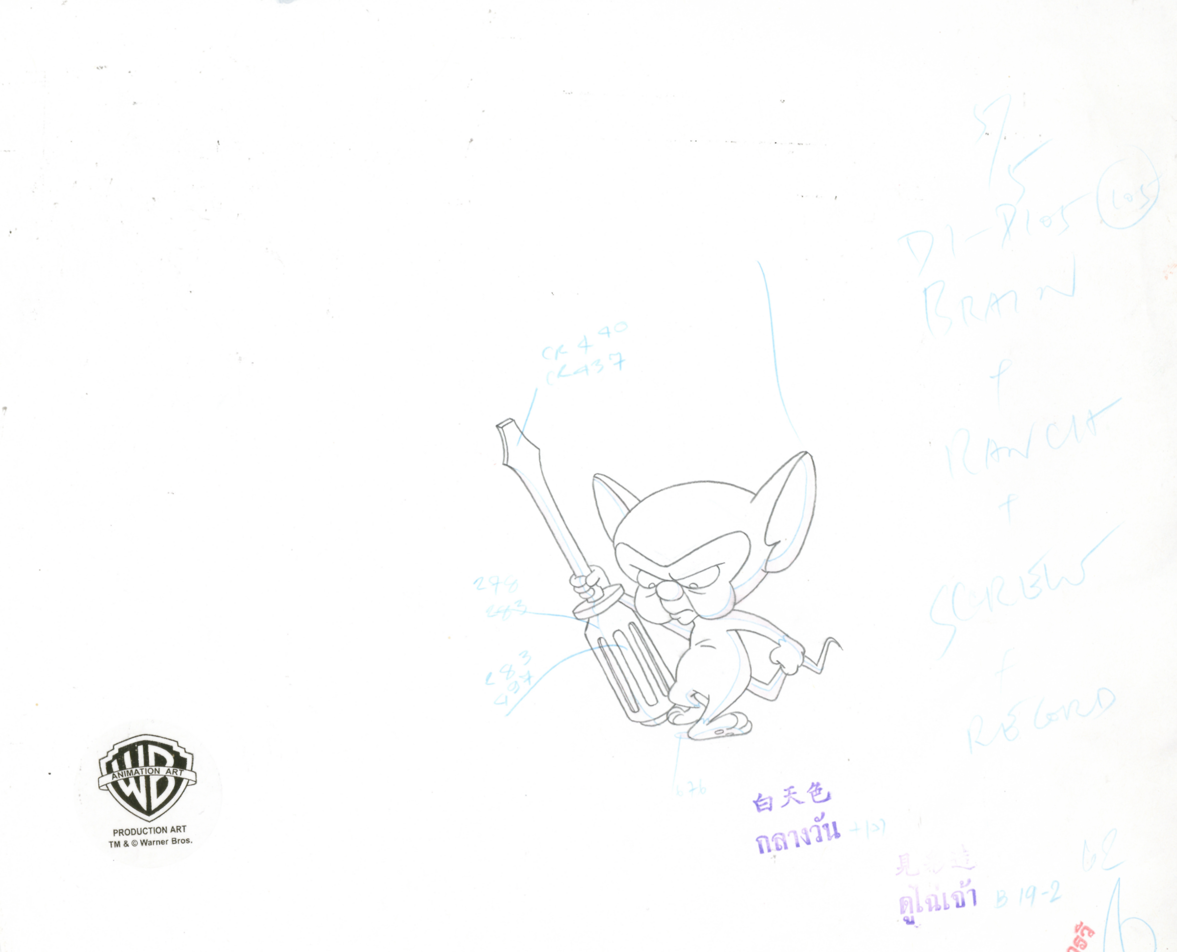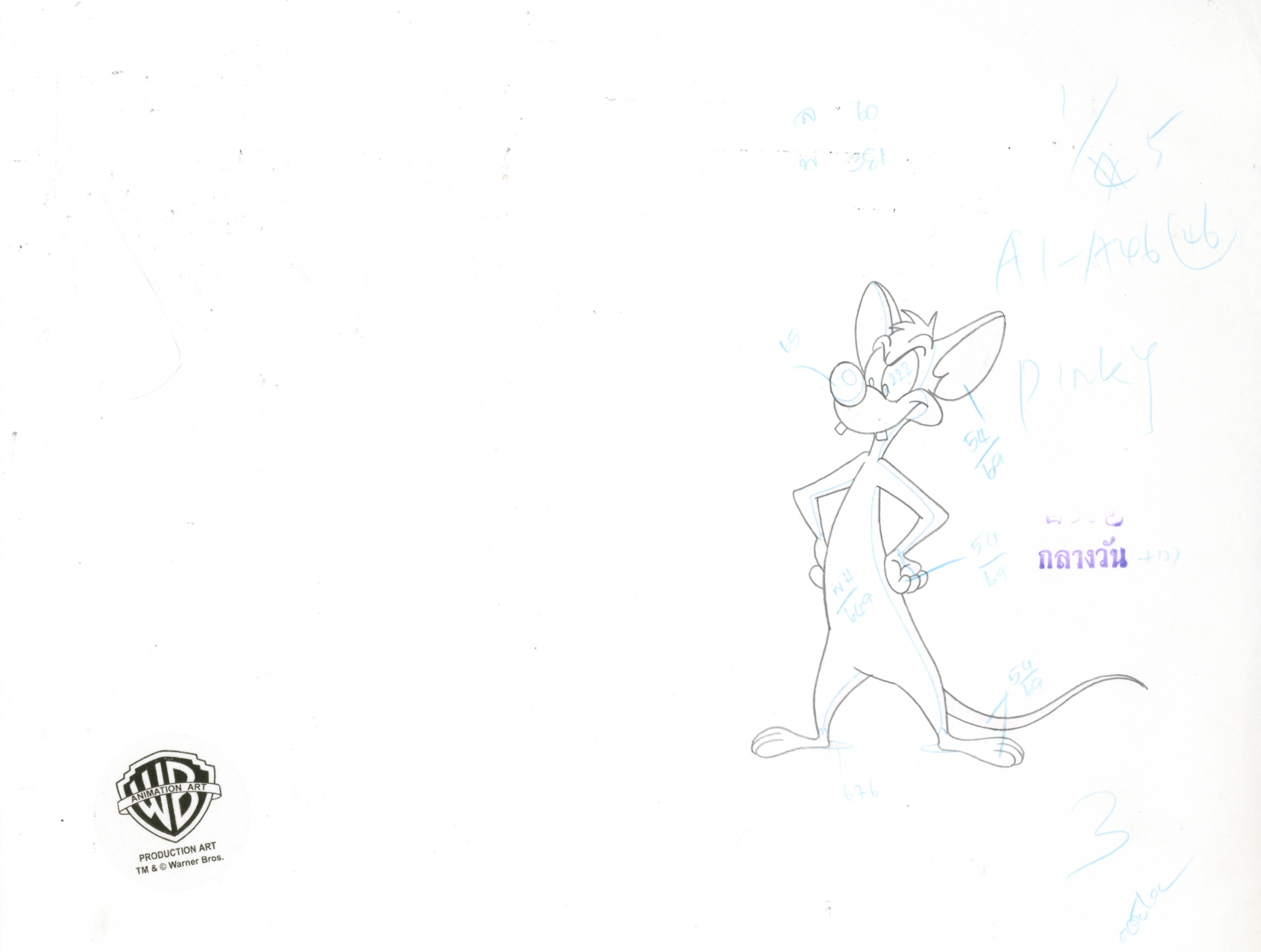 ABOUT THE IMAGE: Pinky and the Brain is a cartoon that follows a self-proclaimed genius, The Brain, and his dimwitted sidekick, Pinky, as they try to conquer the world. Pinky and the Brain was the first animated television series to be presented in Dolby Surround. It was created by Tom Ruegger and the fourth collaboration between Steven Spielberg's production company, Amblin Entertainment and Warner Bros. Animation. The characters first appeared in 1993 as a recurring skit on the show Animaniacs. Thanks to its popularity it was later spun off as a series. There were 66 episodes produced. This piece comes with a certificate of authenticity.
