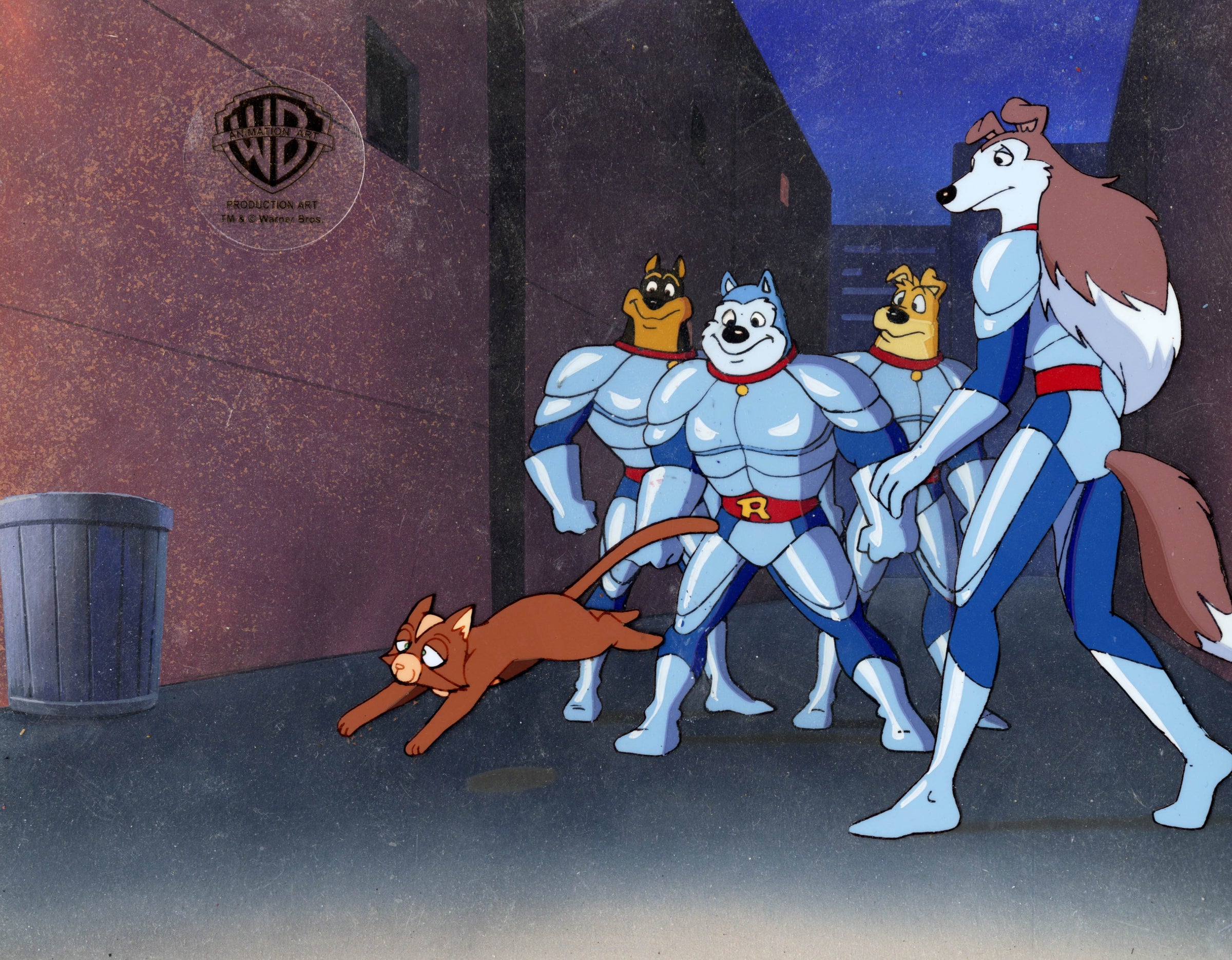 ABOUT THE IMAGE: Road Rovers is an American animated television series produced by Warner Bros. Animation that premiered on Kids' WB on September 7, 1996, and ended after one season on February 22, 1997. It was later shown on Cartoon Network from February 7, 1998, until 2000. The show follows the adventures of the Road Rovers, a team of five super-powered crime-fighting anthropomorphic dogs, known as "cano-sapiens". The characters all live with world leaders, including the President of the United States, the British Prime Minister, the Chancellor of Germany and the Swiss President, with one dog living in the Kremlin. This piece comes with a certificate of authenticity.