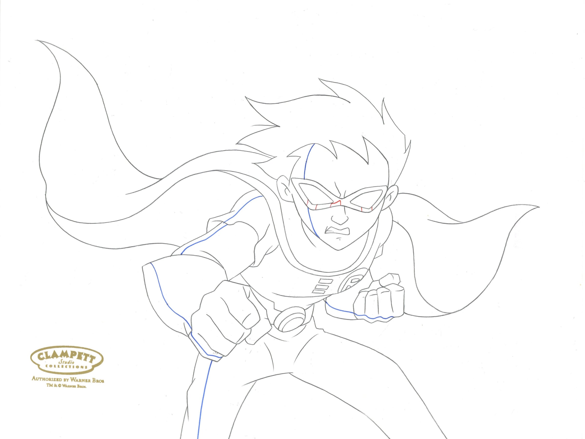 ABOUT THE IMAGE: Leading the crew in Teen Titans to protect Earth is Robin, formerly Batman's sidekick. He has no special powers, just a utility belt and his mind to help solve problems. His team members, Starfire, Raven, Cyborg and Beast Boy, live together in Titans Tower, situated in the West Coast haven Jump City. Each of them possesses unique abilities to help fight a new generation of villains ranging from super-powered hooligans to would-be world conquerors. This piece comes with a certificate of authenticity.