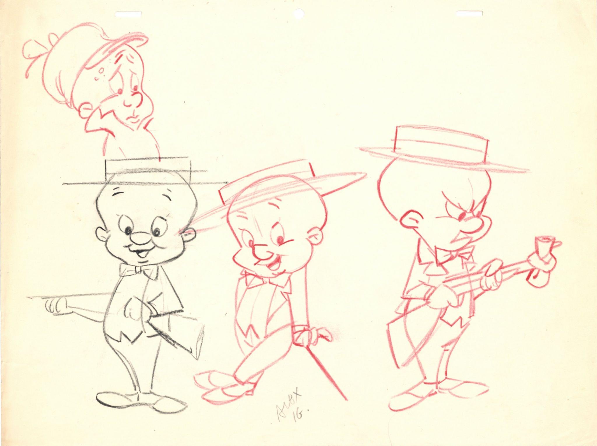 Elmer Fudd Character Model Drawing Signed by Alex Ignatiev
