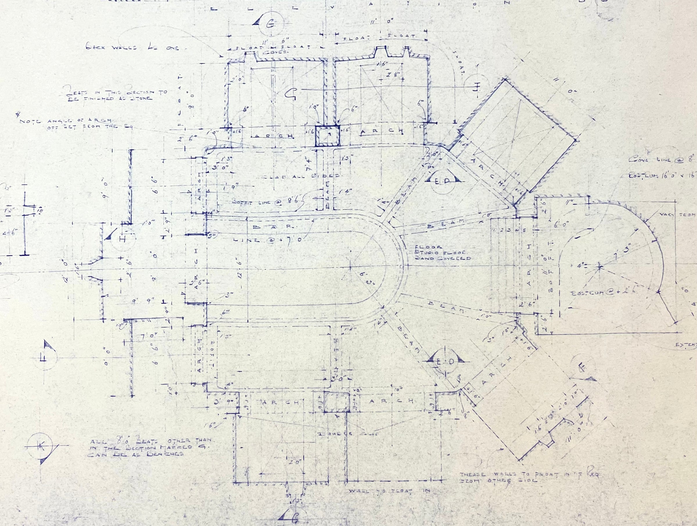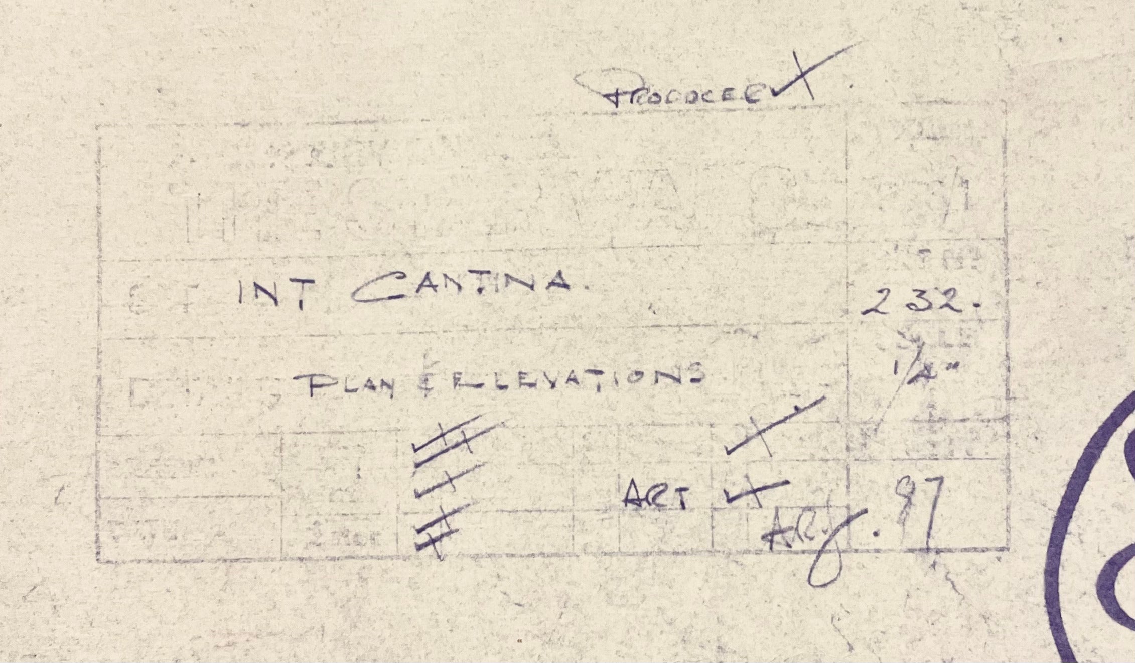 ABOUT THE IMAGE: This incredible photostat print of the Mos Eisley Cantina on Tatooine was made from the original Industrial Light & Magic blueprint. George Lucas gave Norman Jacobs unprecedented access and permission to reproduce production blueprints for publication in his Starlog "Star Wars Technical Journals" licensed by the Lucas Org. The piece is printed from original ILM vellum on 50" x 36" blue line paper depicting an elevation of the Mos Eisley Cantina, which bears the working title, "The Star Wars." (Exhibiting age and handling with some toning, curling, and tears to edges, not affecting imagery.)