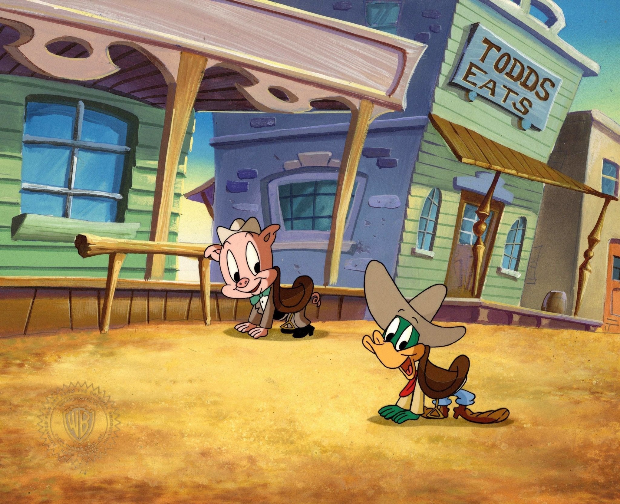 Tiny Toons Original Production Cel on Original Background: Plucky Duck and Hamton J. Pig