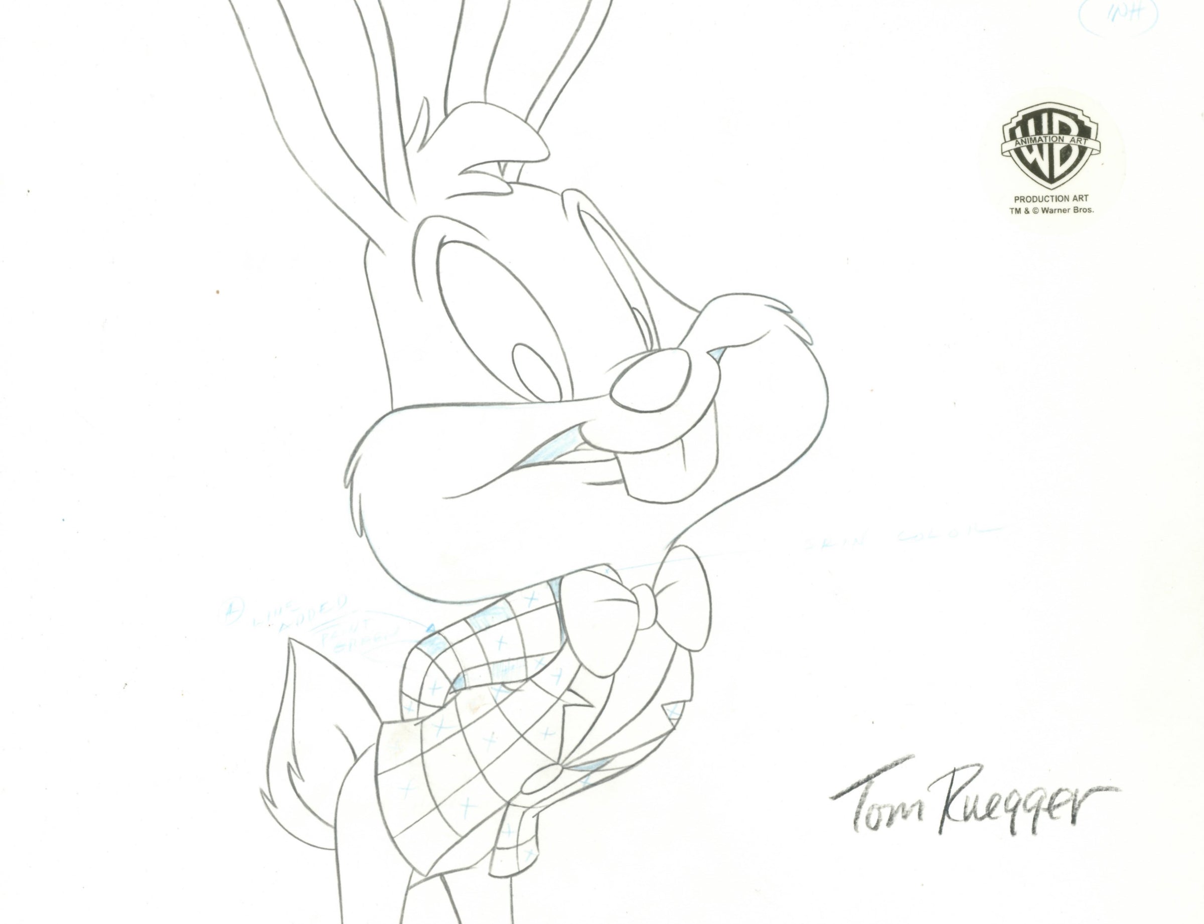 Tiny Toons Original Production Cel with Matching Drawing Signed by Tom Ruegger: Buster Bunny
